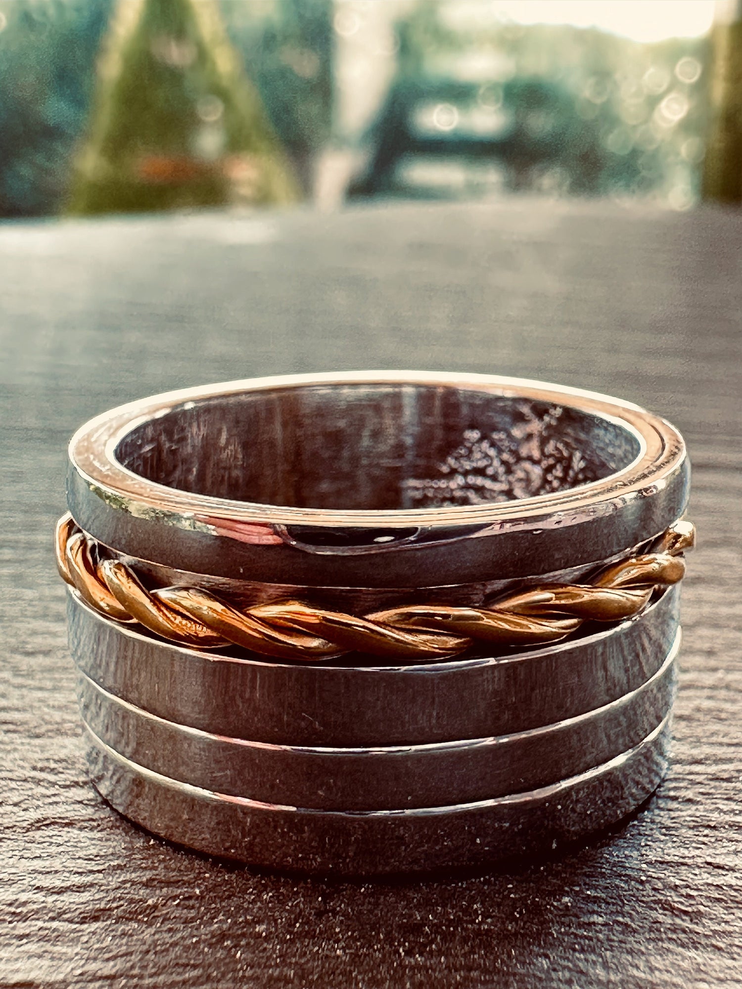 • This is silver cuff with copper details, a wavy design on a rustic mens jewellery, ideal gift for him