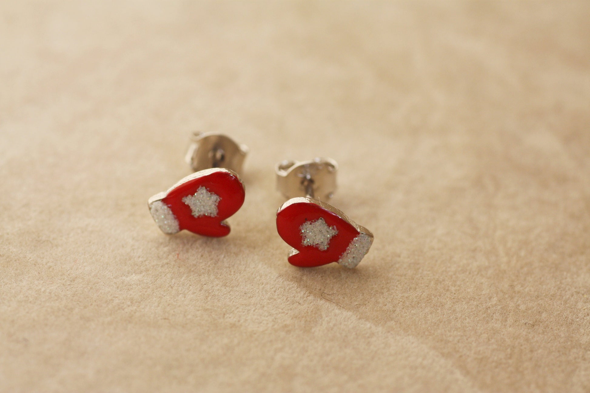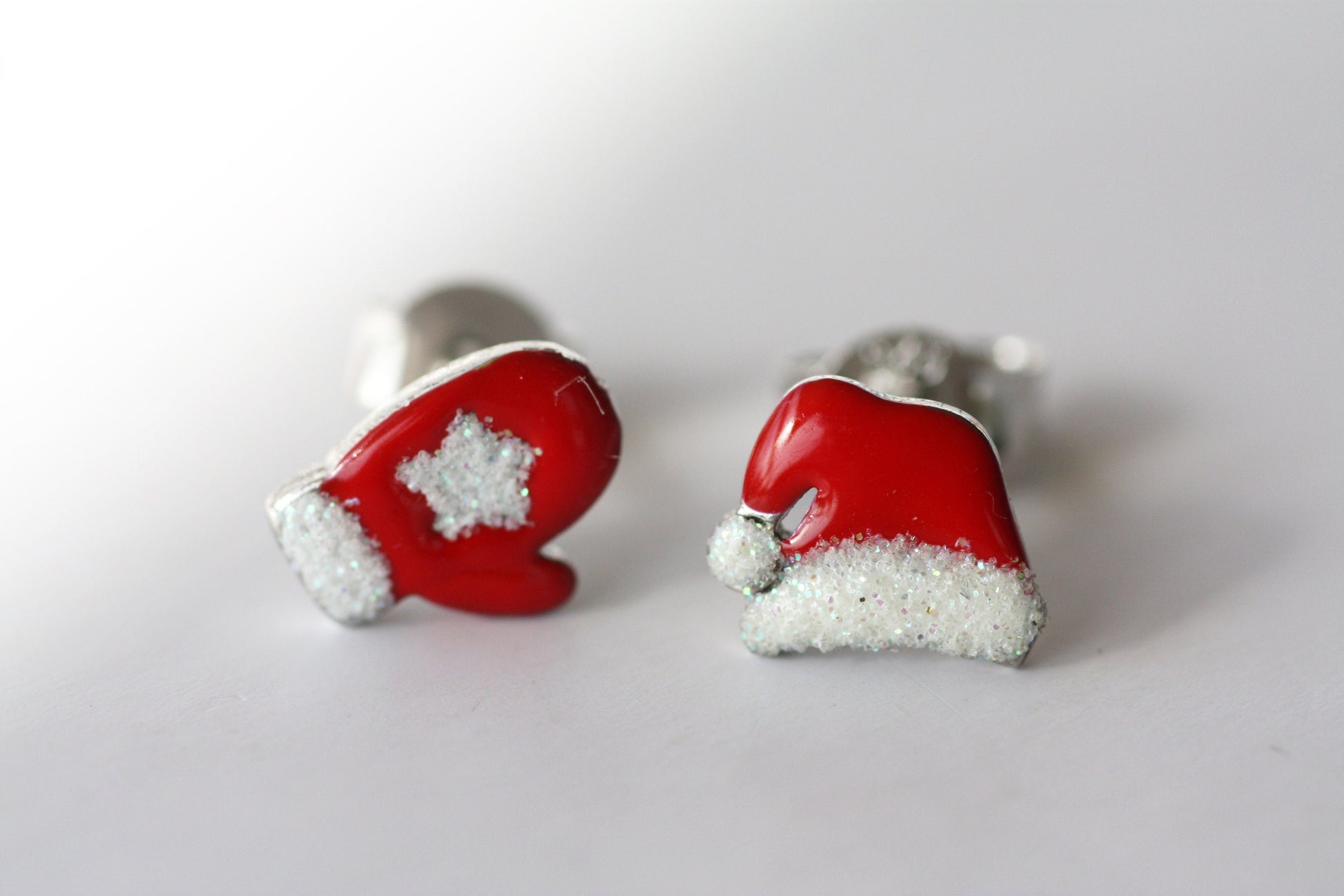 Dainty Gloves and Santa Hat earrings for kids, Choose a pair of gloves or a pair of Santa hat or even a mismatched pair!!!