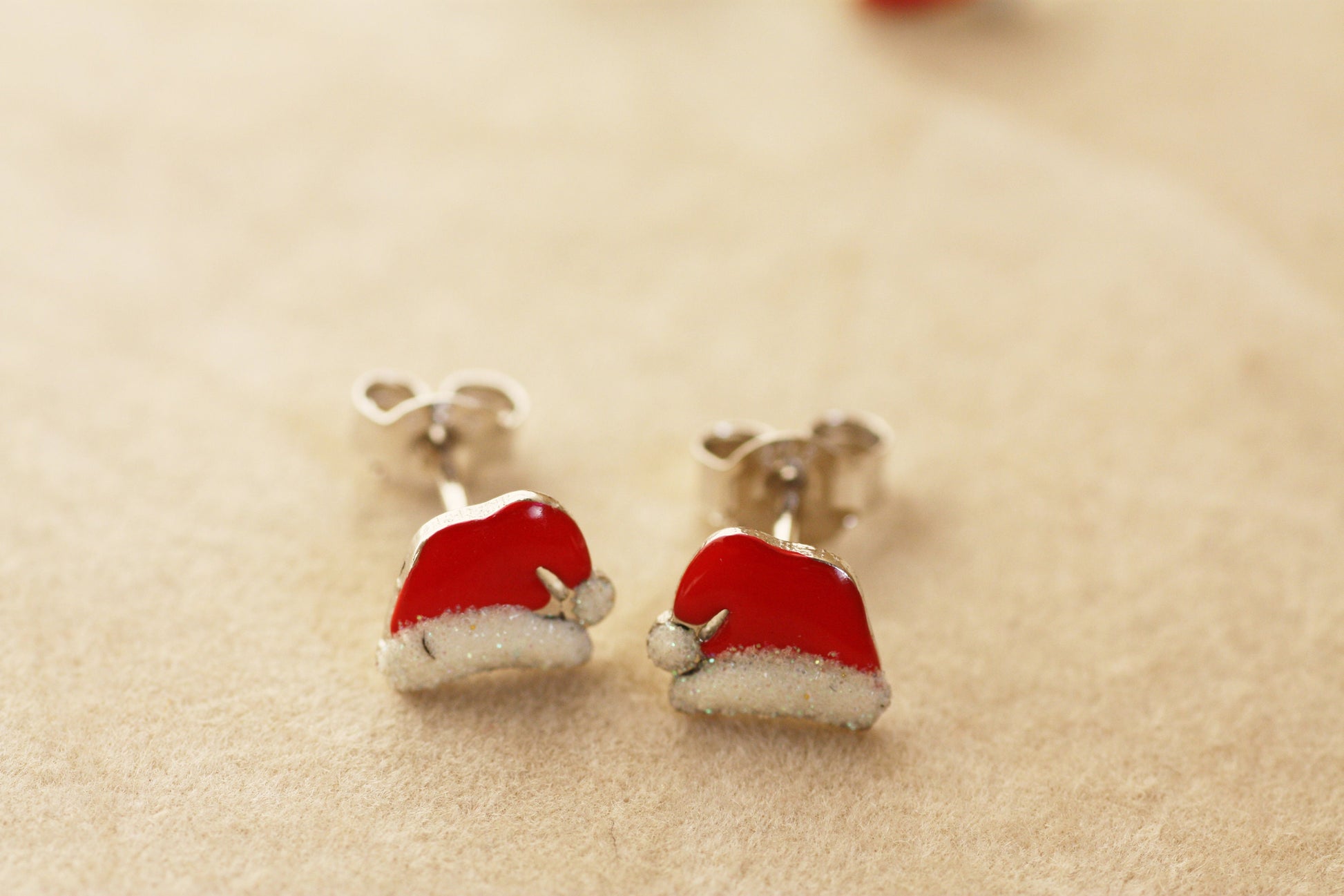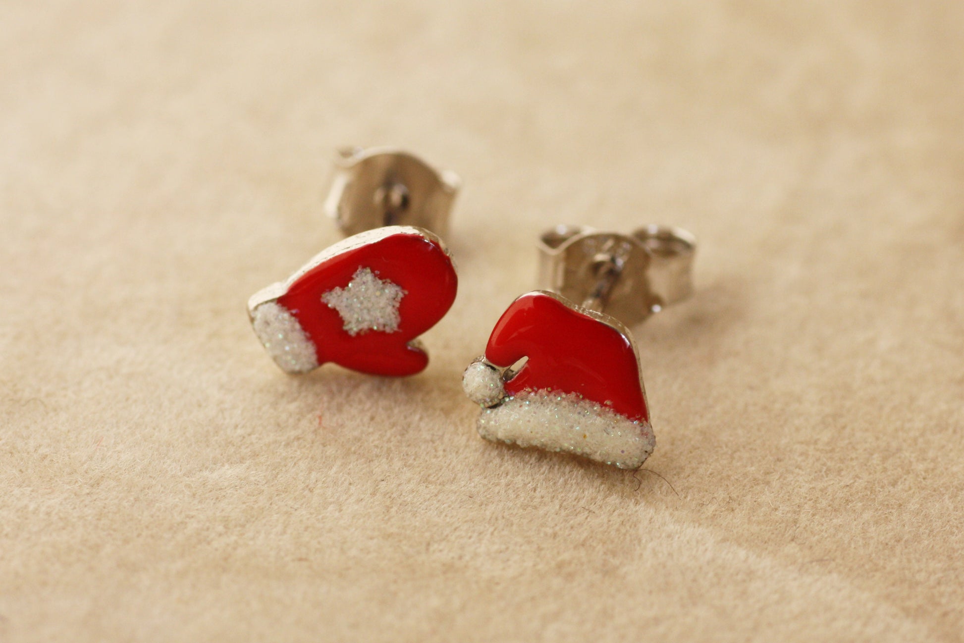 Silver and Enamel Gloves and Santa Hat earrings very comfortable wearing. Perfect Christmas Gift!