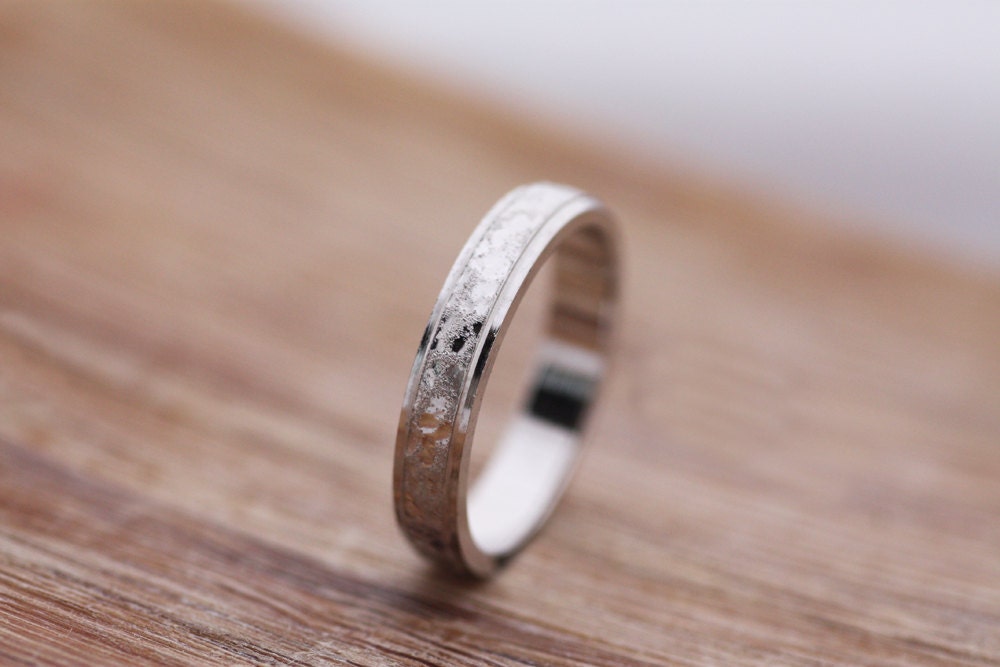 The ring is finished with hammered effect, shinny and made of solid 18K, 14K, 9K gold or silver. Solid 18k white (featured), yellow or rose gold hammered ring.