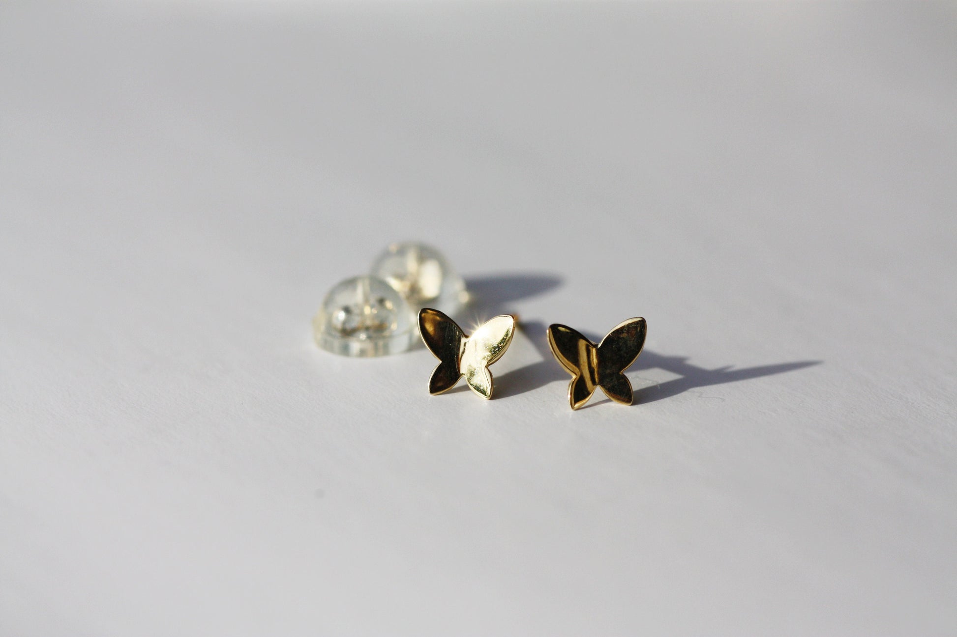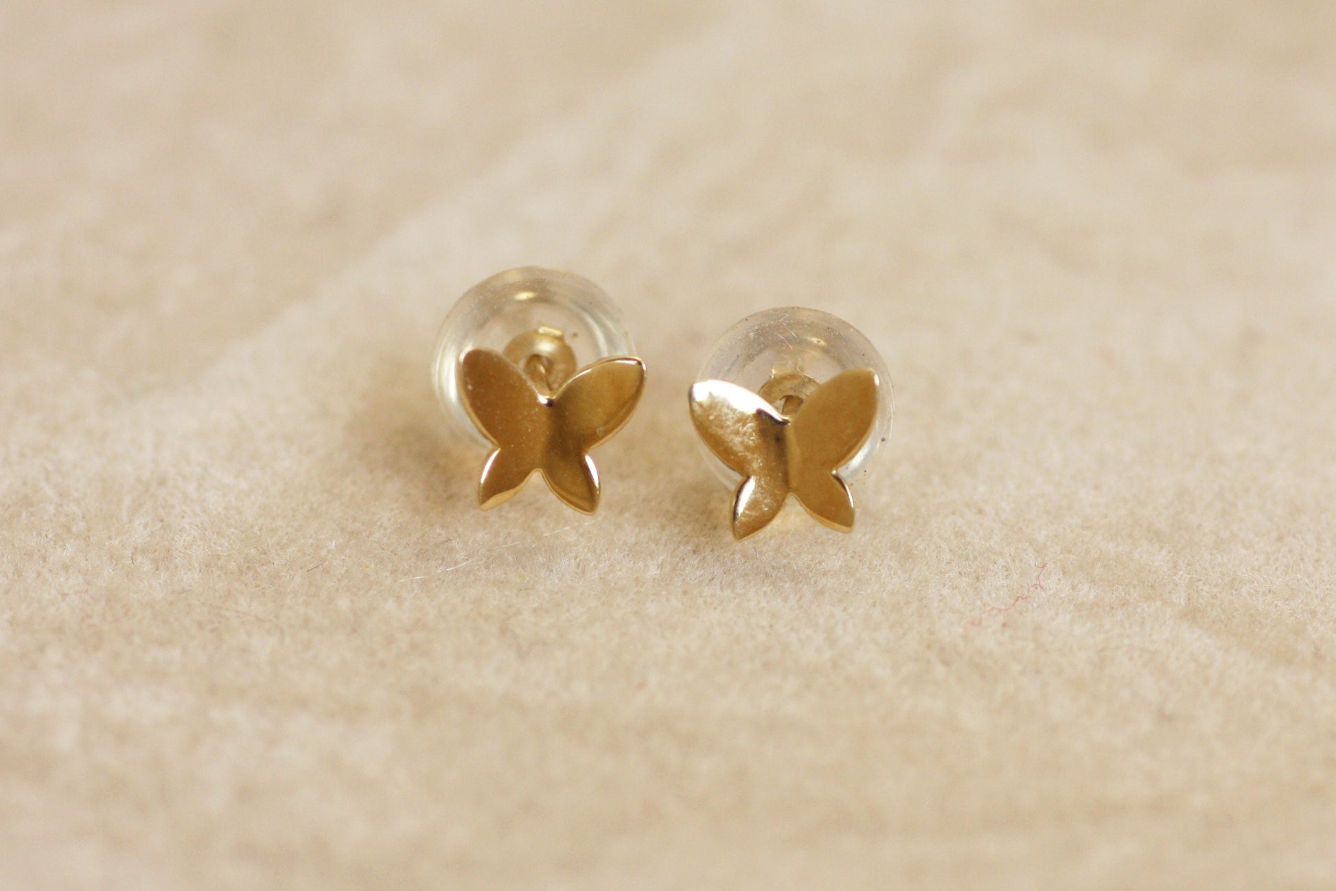 9K Solid Gold Earrings, Dainty Butterfly Kids earrings, 5x6 mm solid Gold butterfly earrings with covered gold backs for even more comfortable wearing.