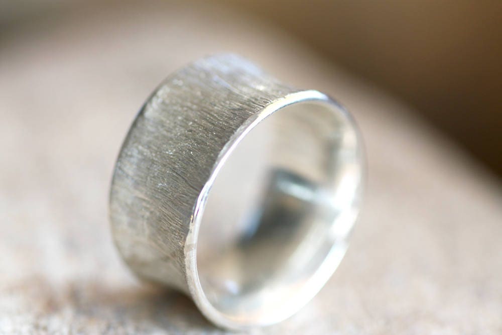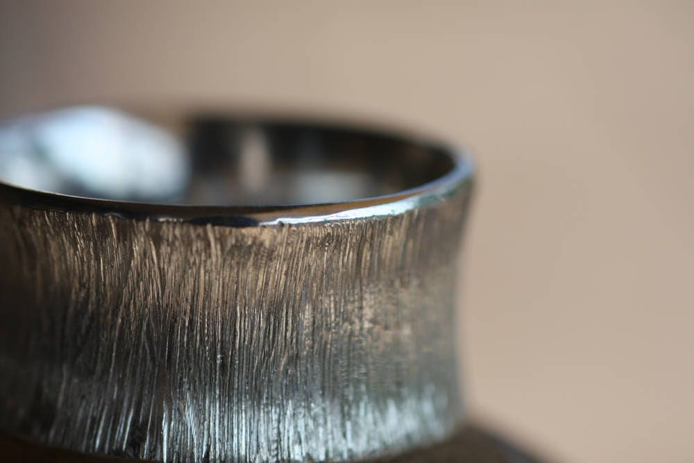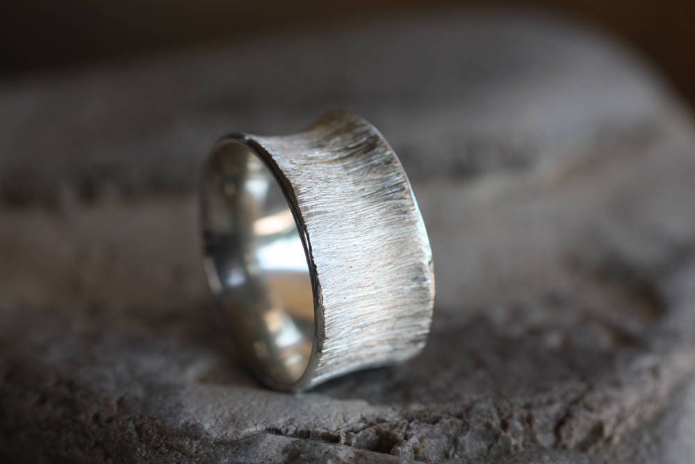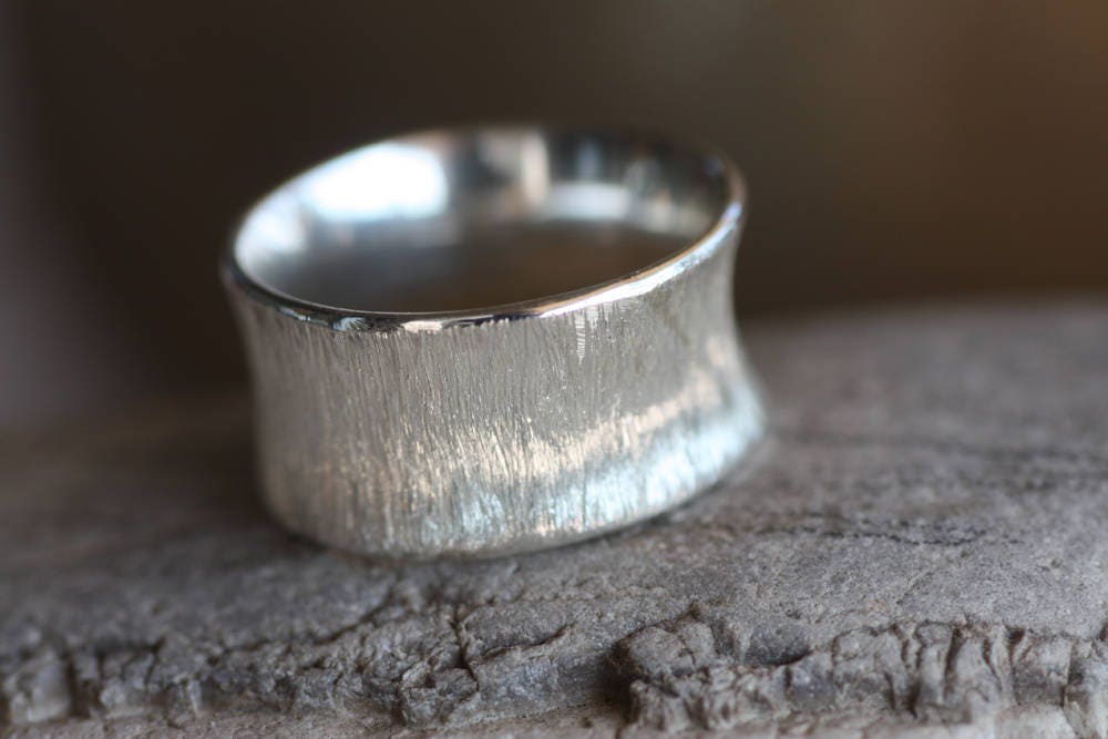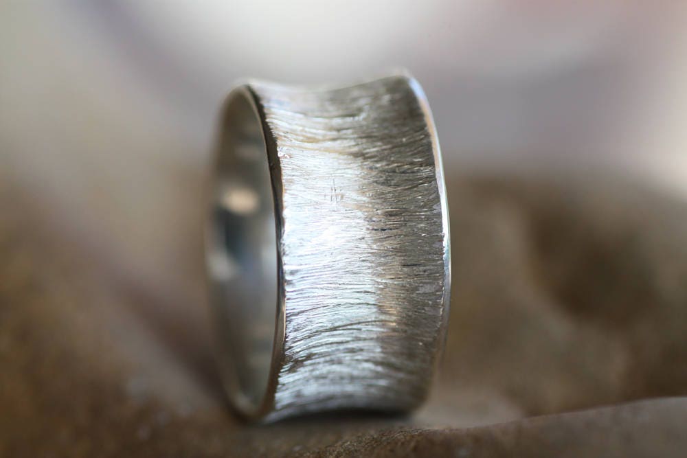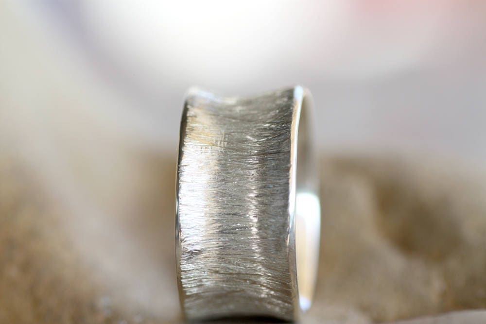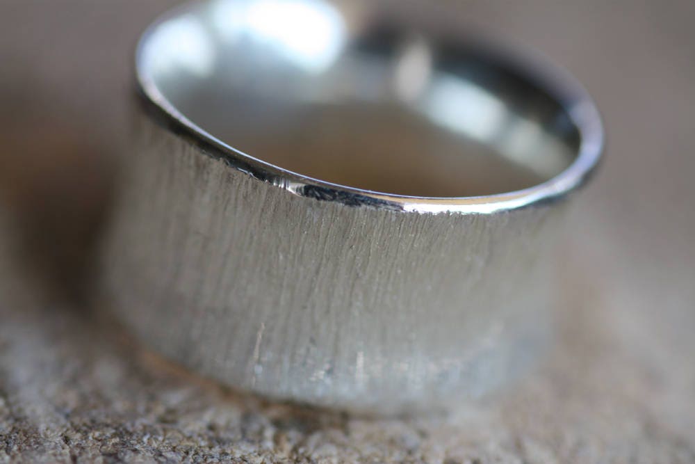 Textured Gold Wedding band made of White Gold 9K, 14K or 18K, excellent finish, originally made at 8mm wide and 1mm thick, but they can be custom made thinner or wider for you.