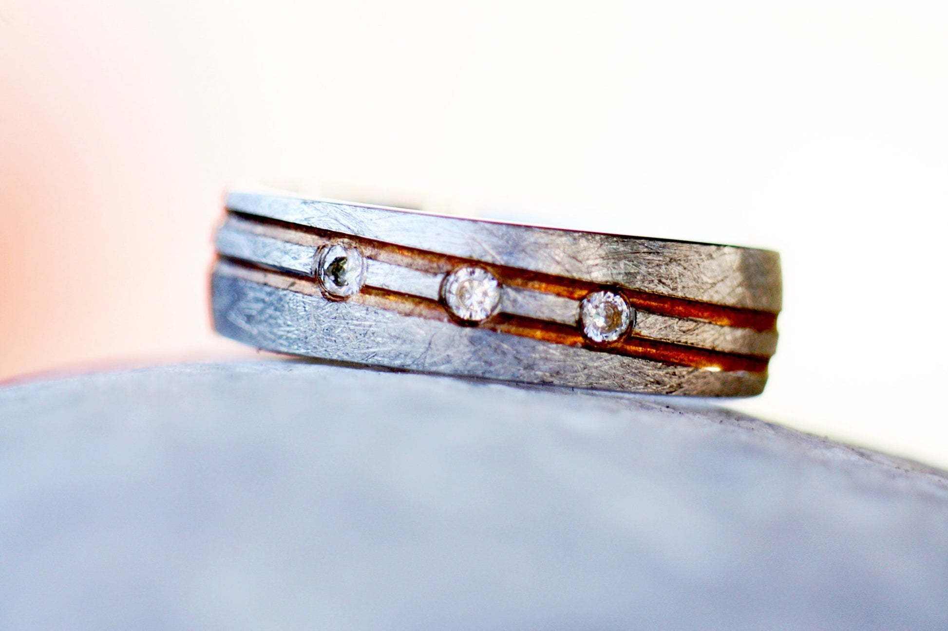 Textured Gold Wedding ring, Diamond Rose Gold ring