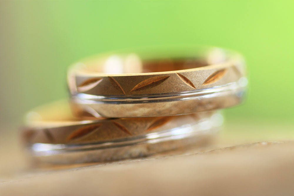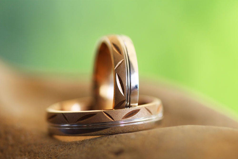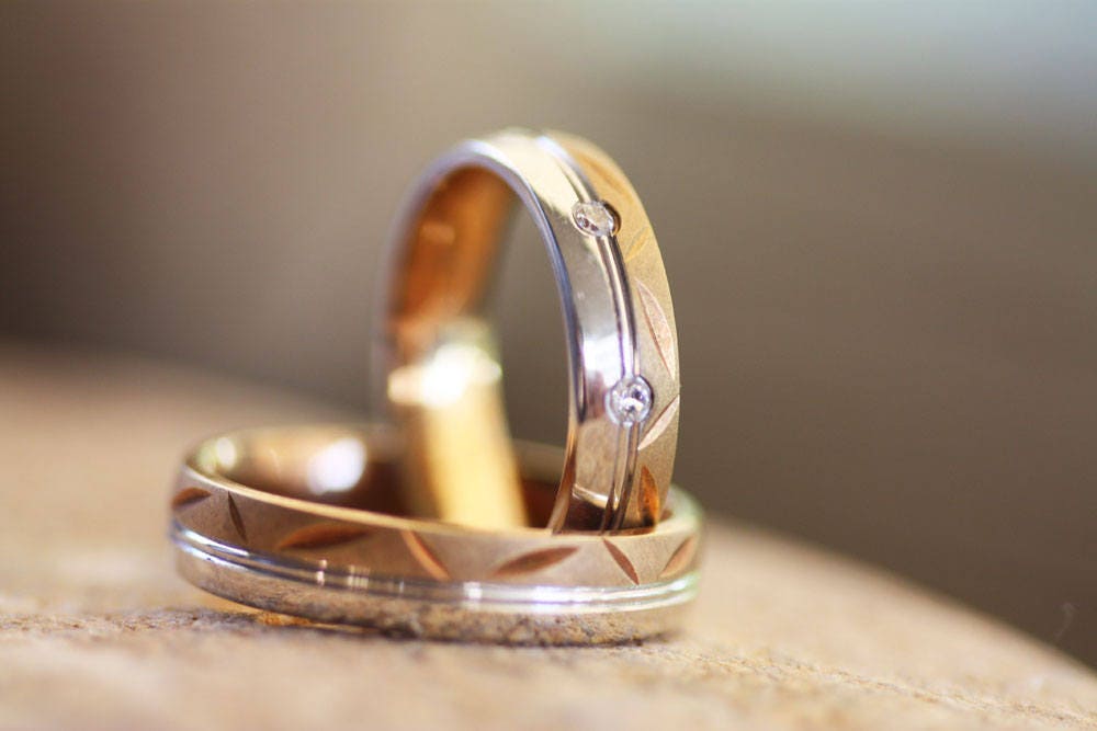 Wedding gold ring set / Men wedding RING / Personalized engraved VALENTINES DAY gift