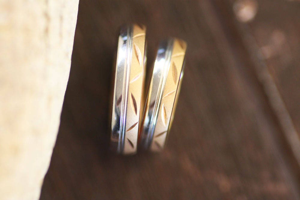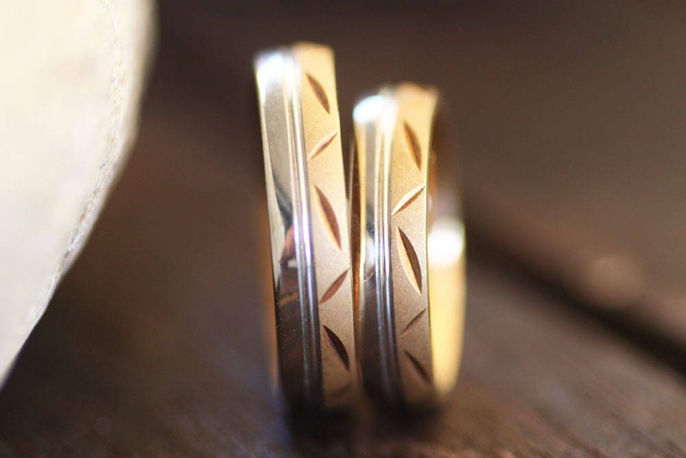 Gold Wedding ring set made of White and Yellow Gold excellent finish. Perfect anniversary gifts idea