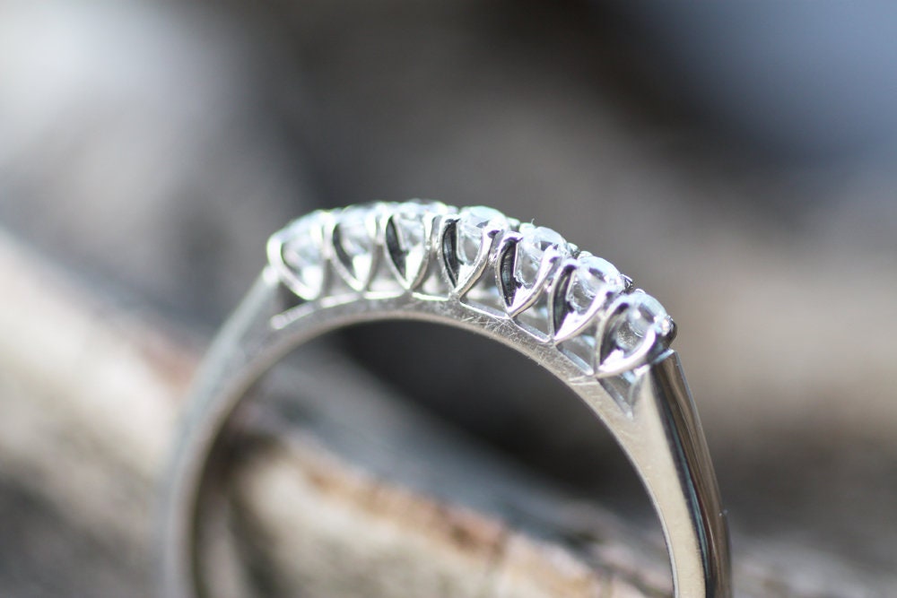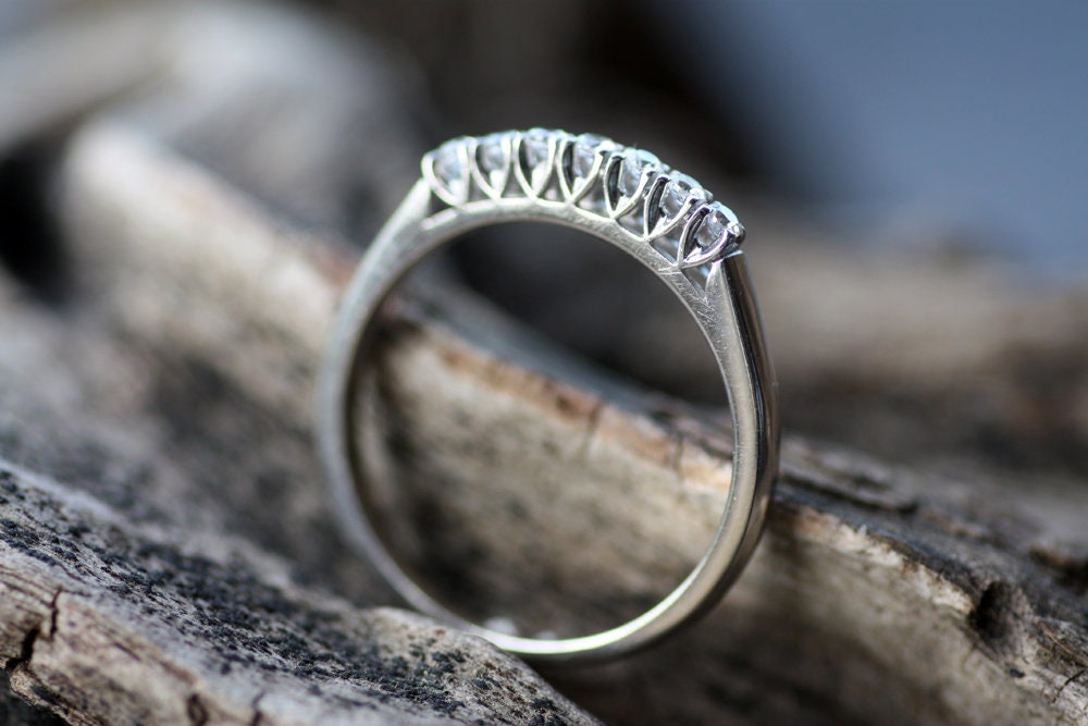 Multistone diamond ring, 7 round cut brilliant diamonds, total weight 0,30ct, set on White Gold K18. Choose the precious gemstone you prefer, sapphires with diamonds or rubies and emeralds, make your combination!