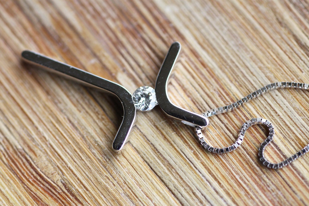 Gold diamond cross, this elegant K18 white gold cross contains a round brilliant cut diamond. The diamond is VS1 clarity, F colour and 0,10ct weight. Baby jewellery christening.