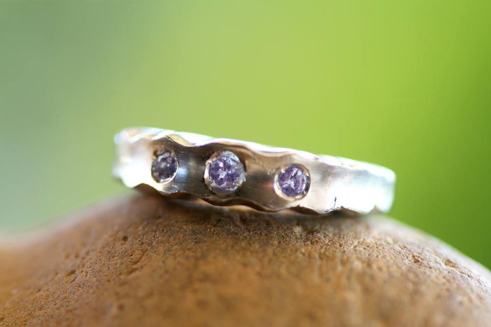 Sterling Silver, Tanzanites, rounds 2,4mm at 0,18t total weight.