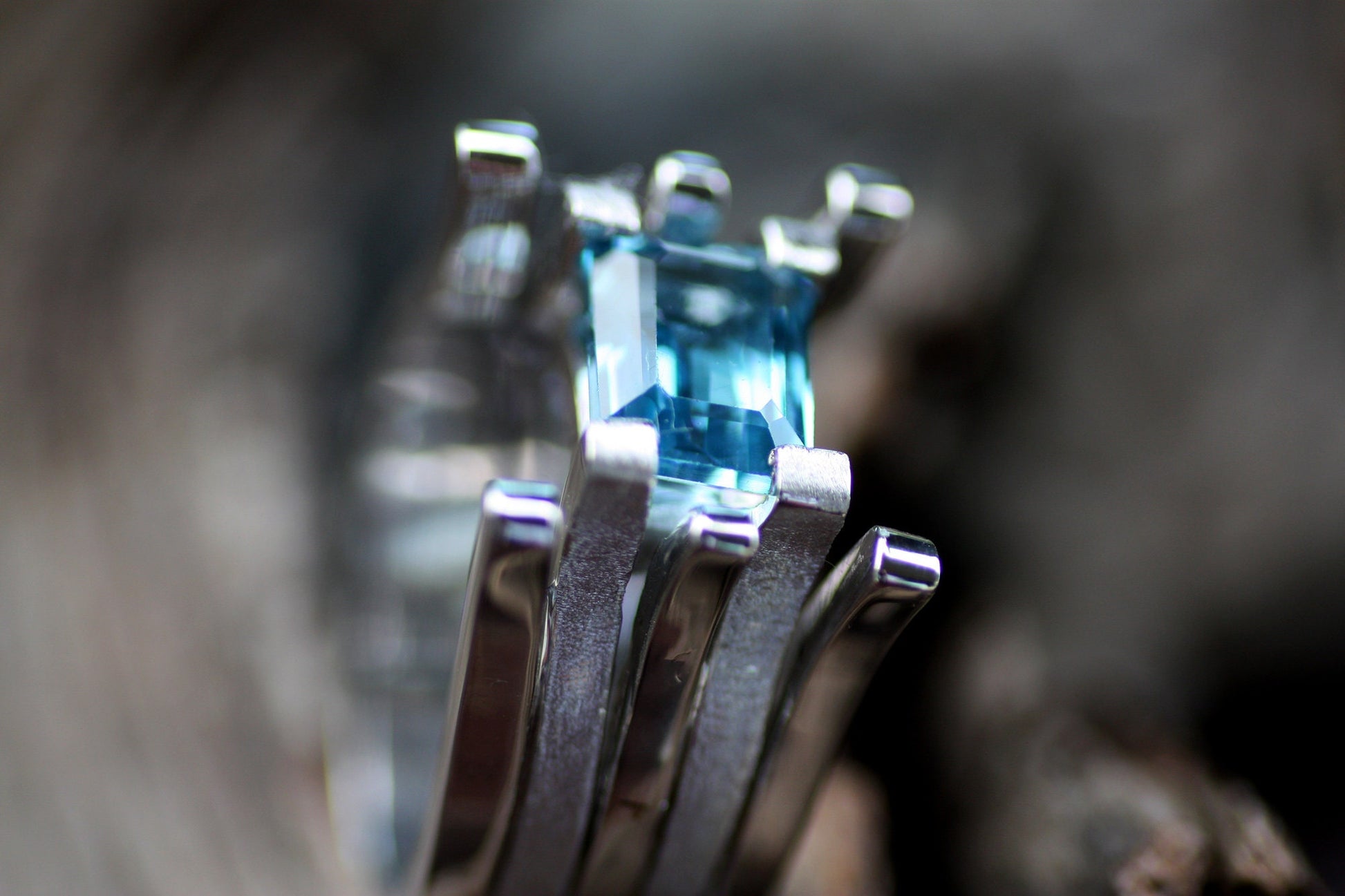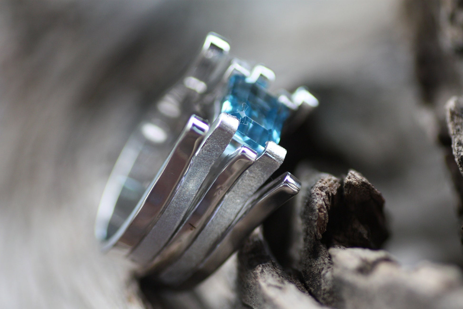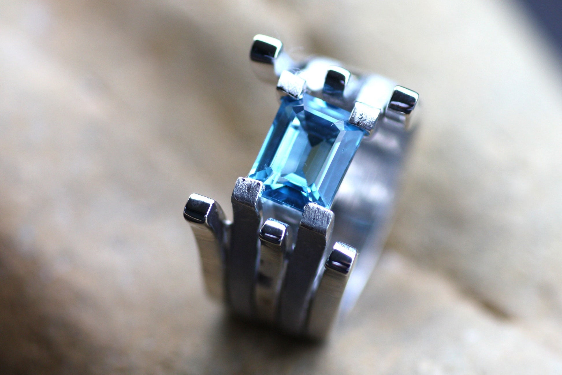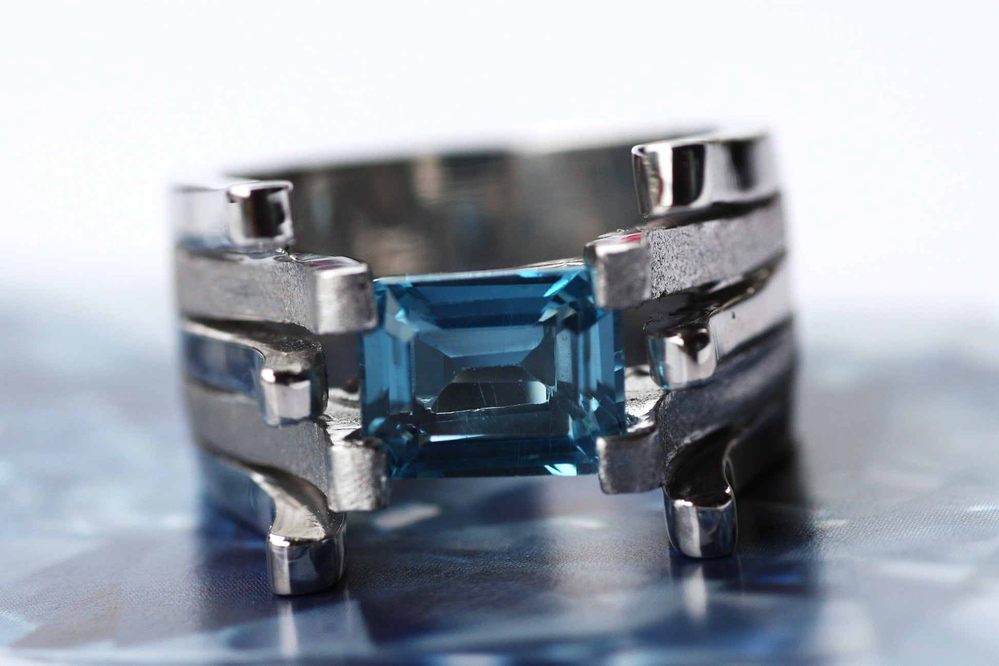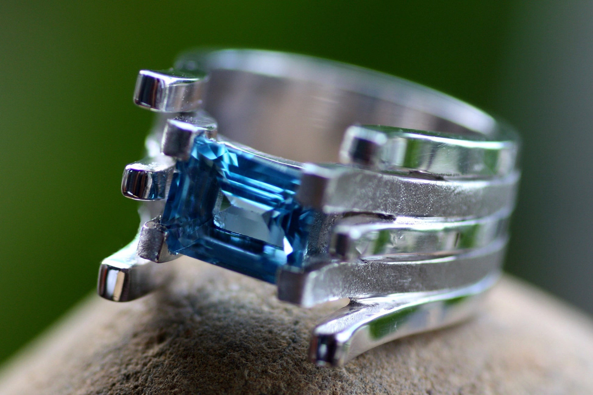 Blue Topaz Birthstone ring, Personalized chunky engagement ring