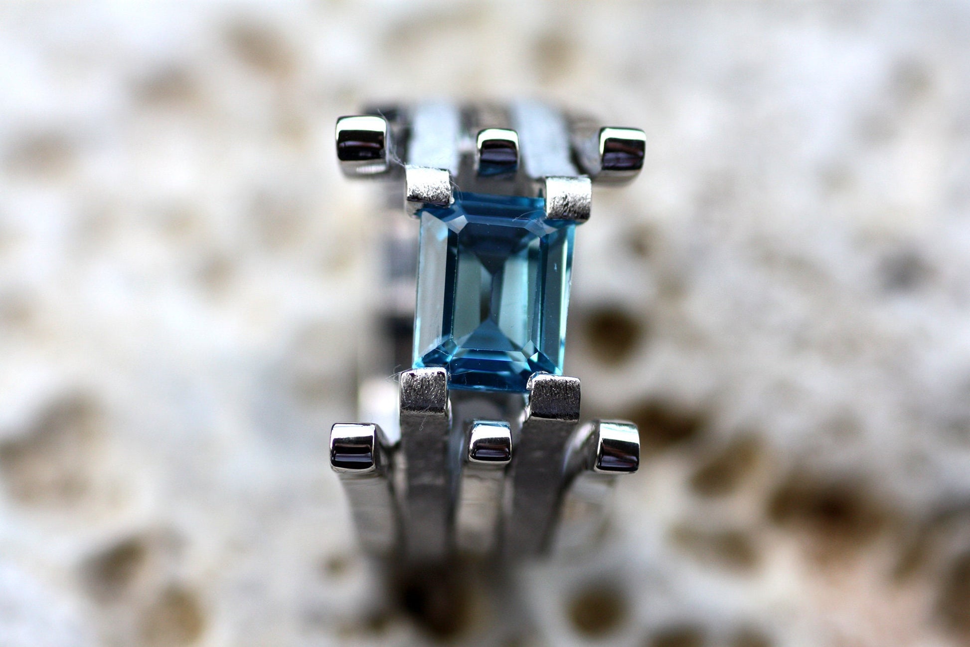 Blue Topaz dimensions are 6x8mm and 0,82 ct weight, beautifully crafted set on this unique jewel.