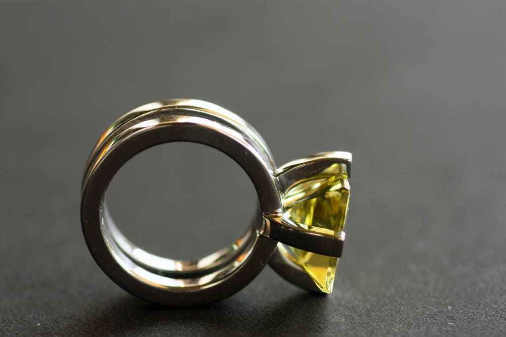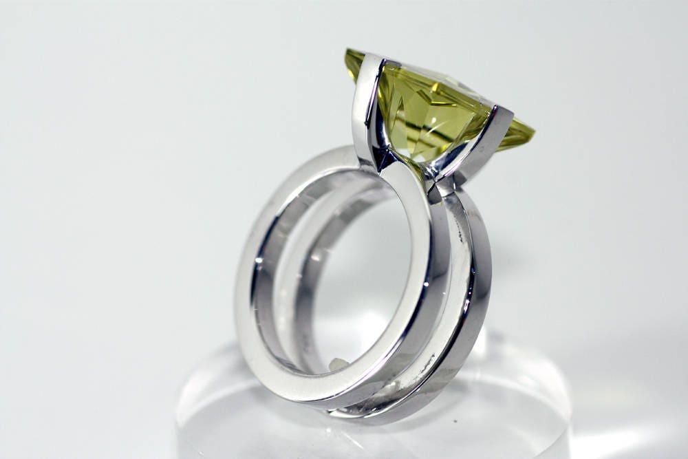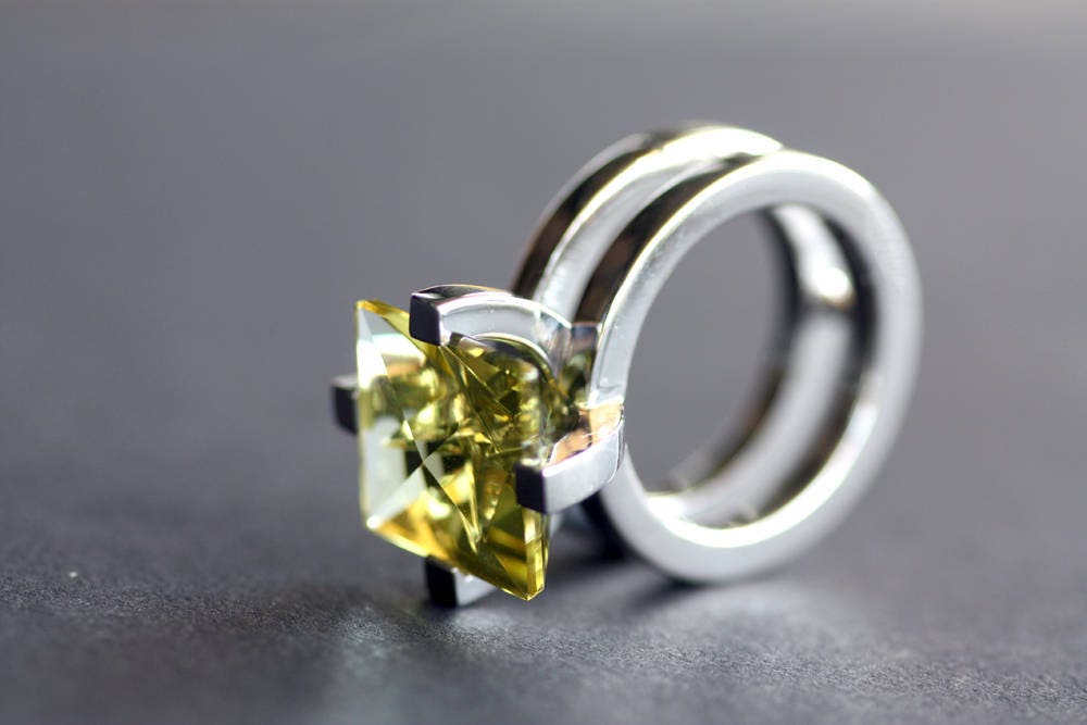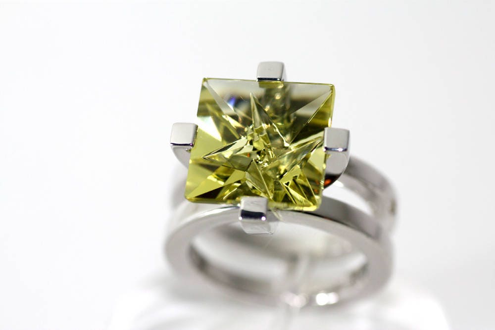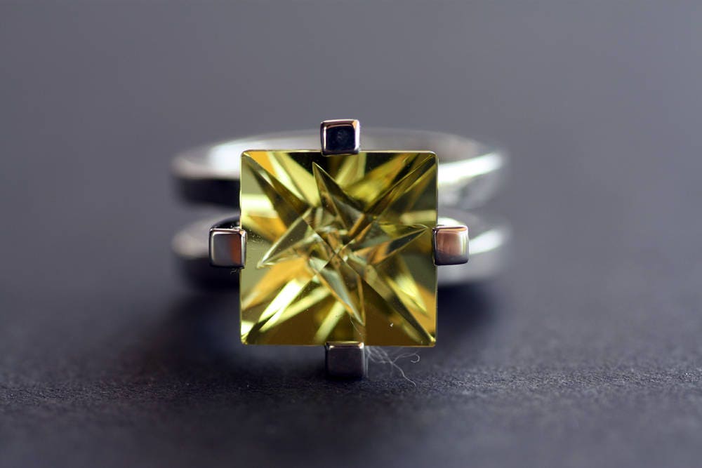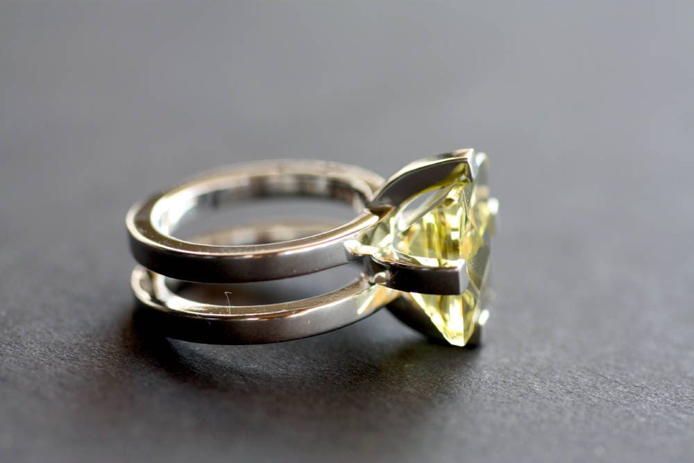 Lemon Quartz Handcrafted gemstone, Geometric ring