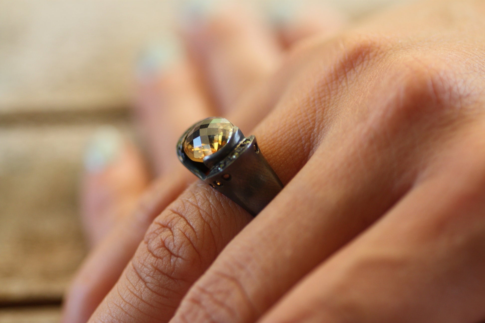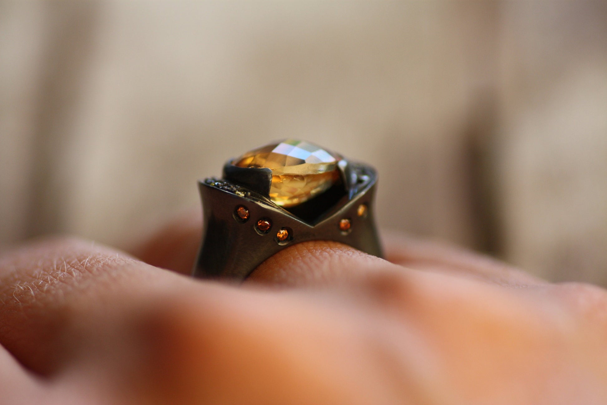 Citrine, Yellow Sapphire, Cognac and yellow diamond ring