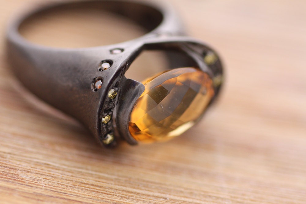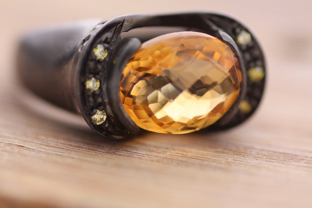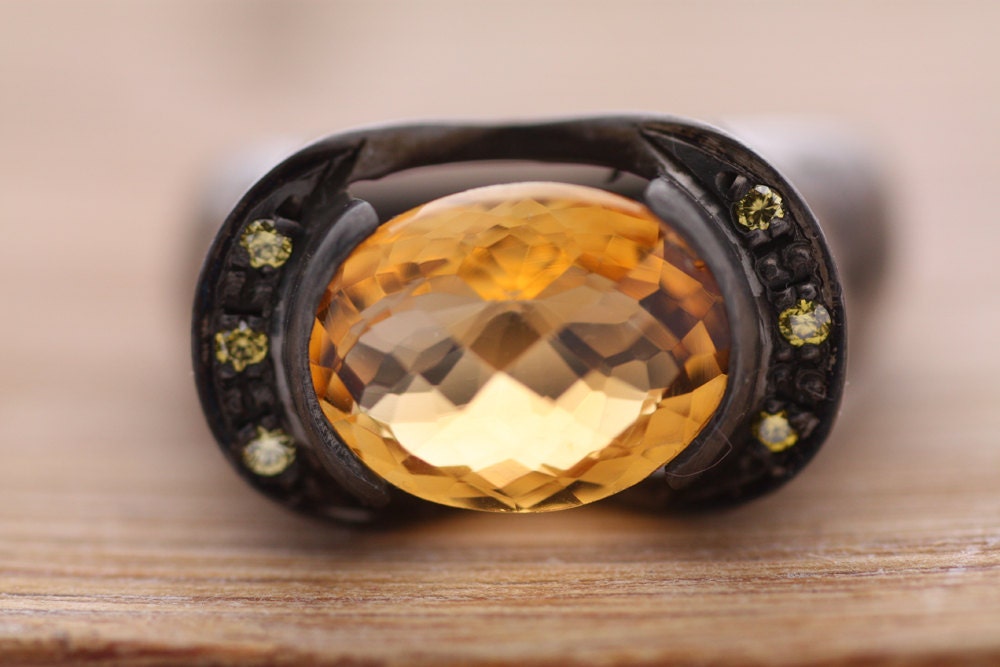 Citrine, yellow sapphire ring Sterling Silver ring with Diamonds, Perfect Valentines Gift for her