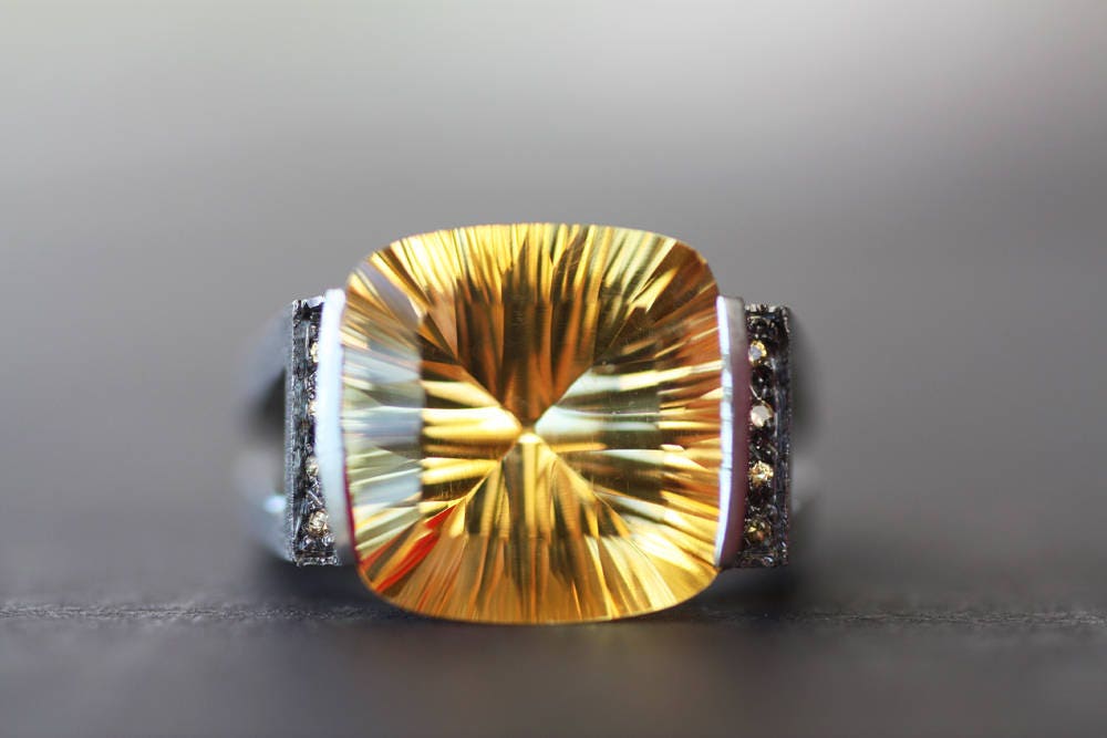 Citrine gemstone, remarkably handcrafted, set on Sterling Silver, black-rhodium plated.