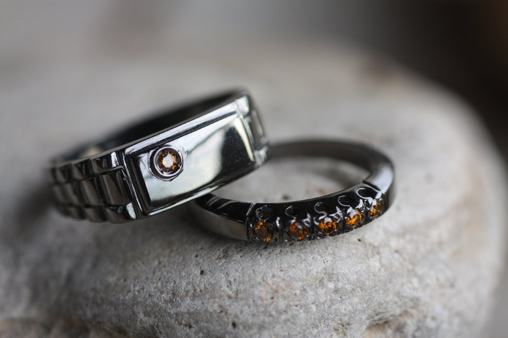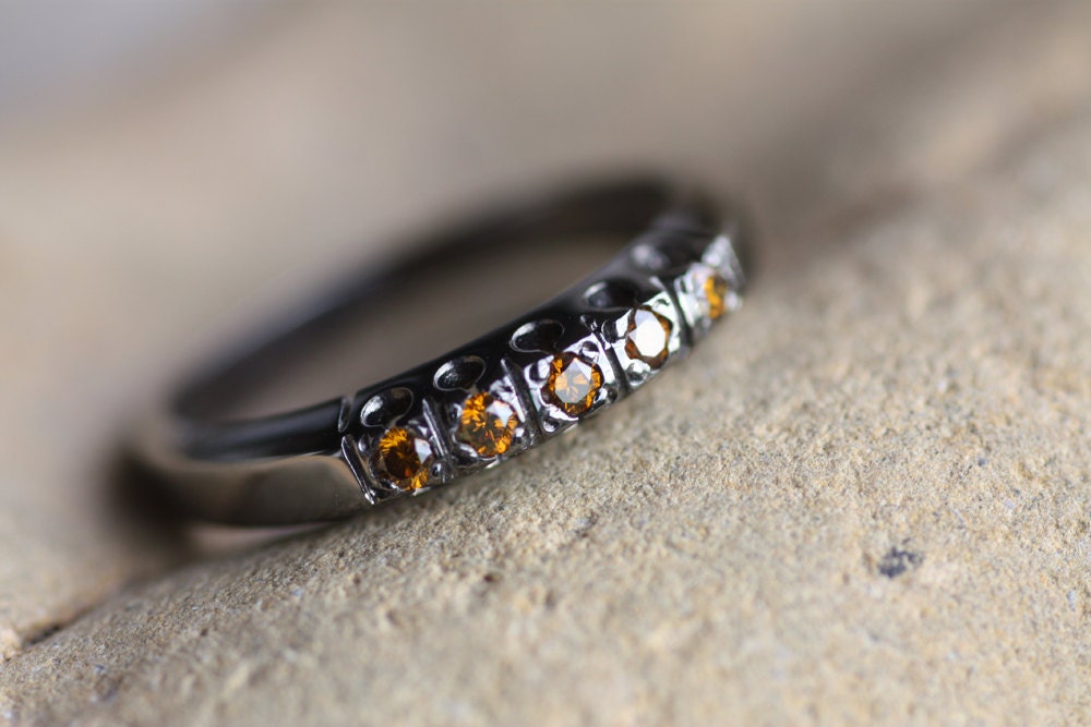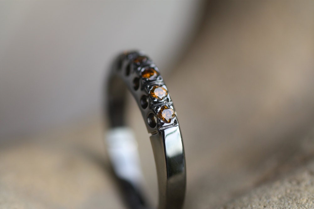 A Sterling Silver ring, Black Rhodium plated with Cognac Diamonds or Sapphires Yellow or Pink!