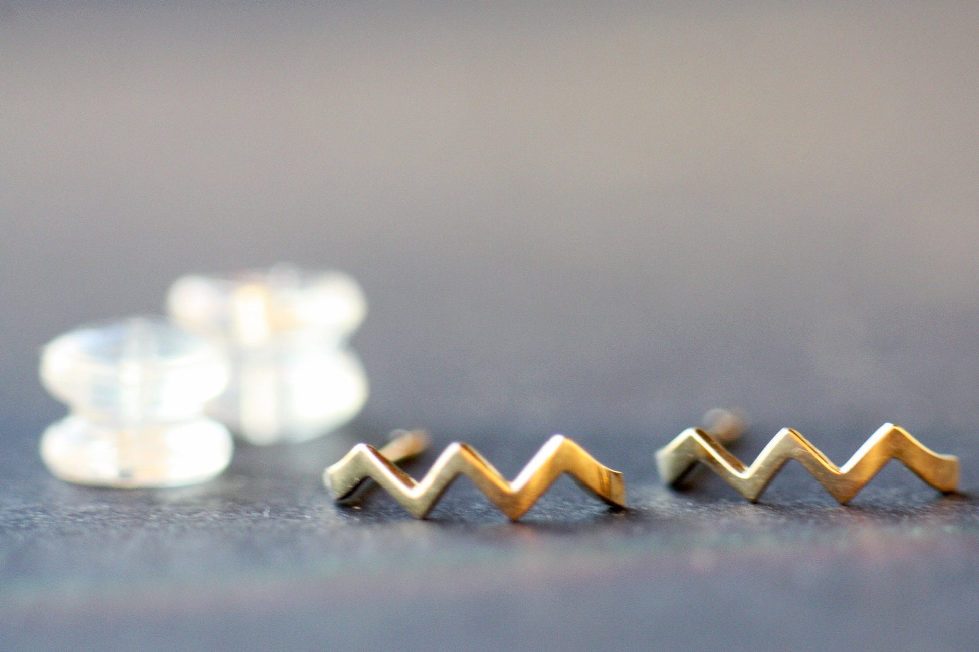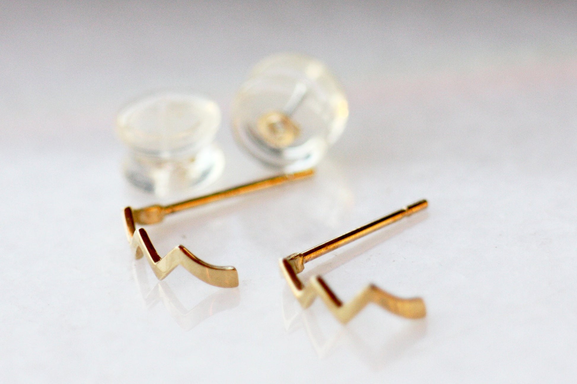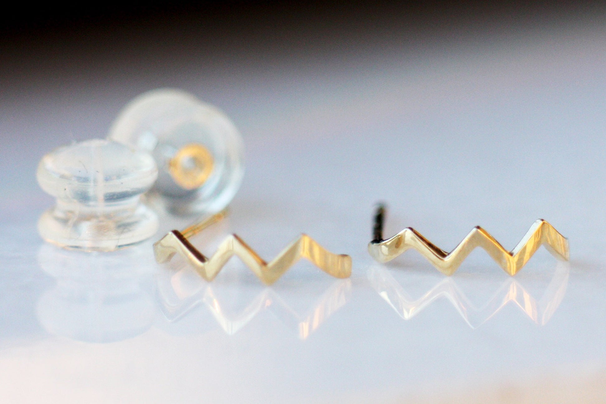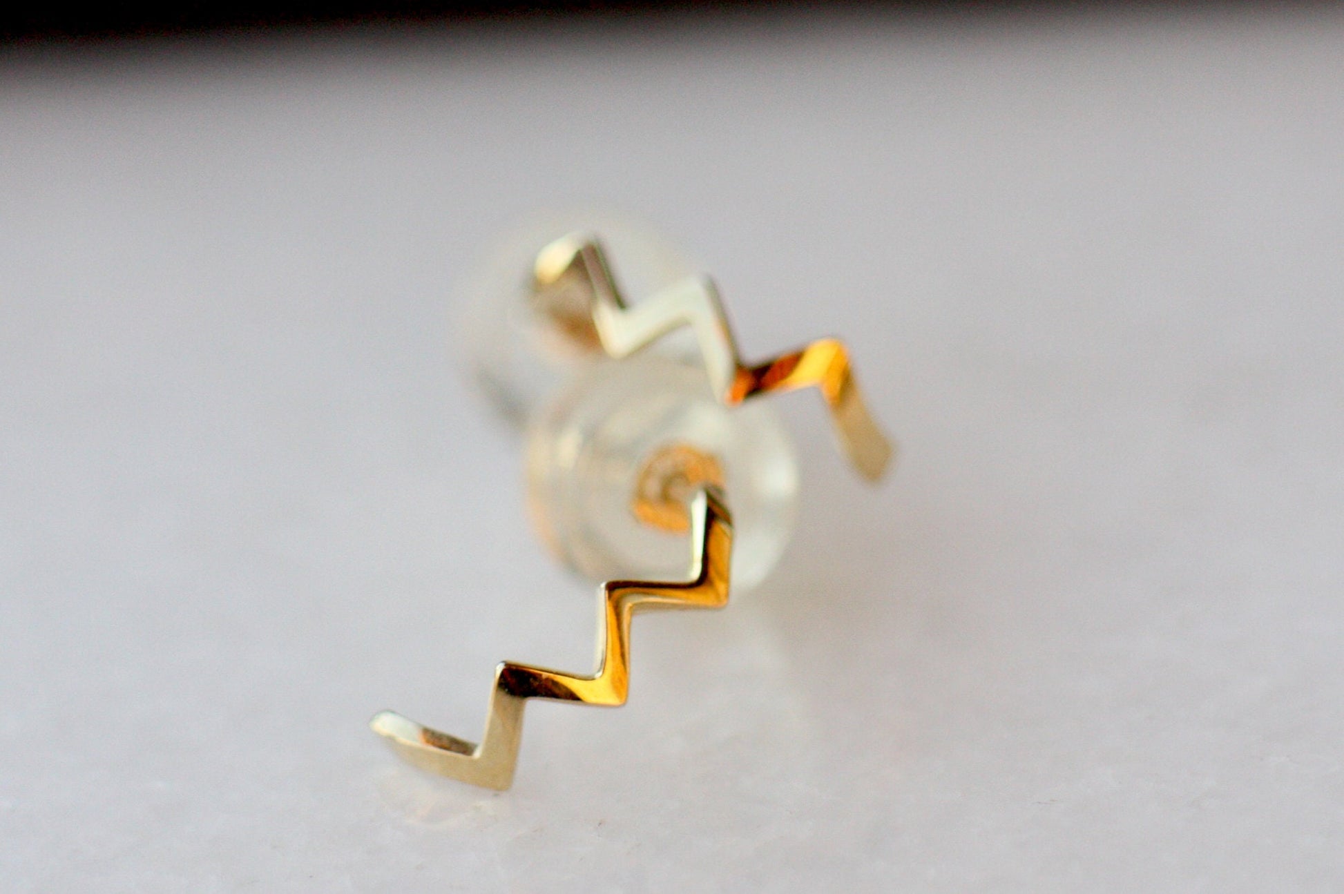 Dainty Gold studs earrings, Thunder gold Birthday earrings,Cute zig zag earrings for kids, Polygonal 9K gold studs, Valentines gift for her