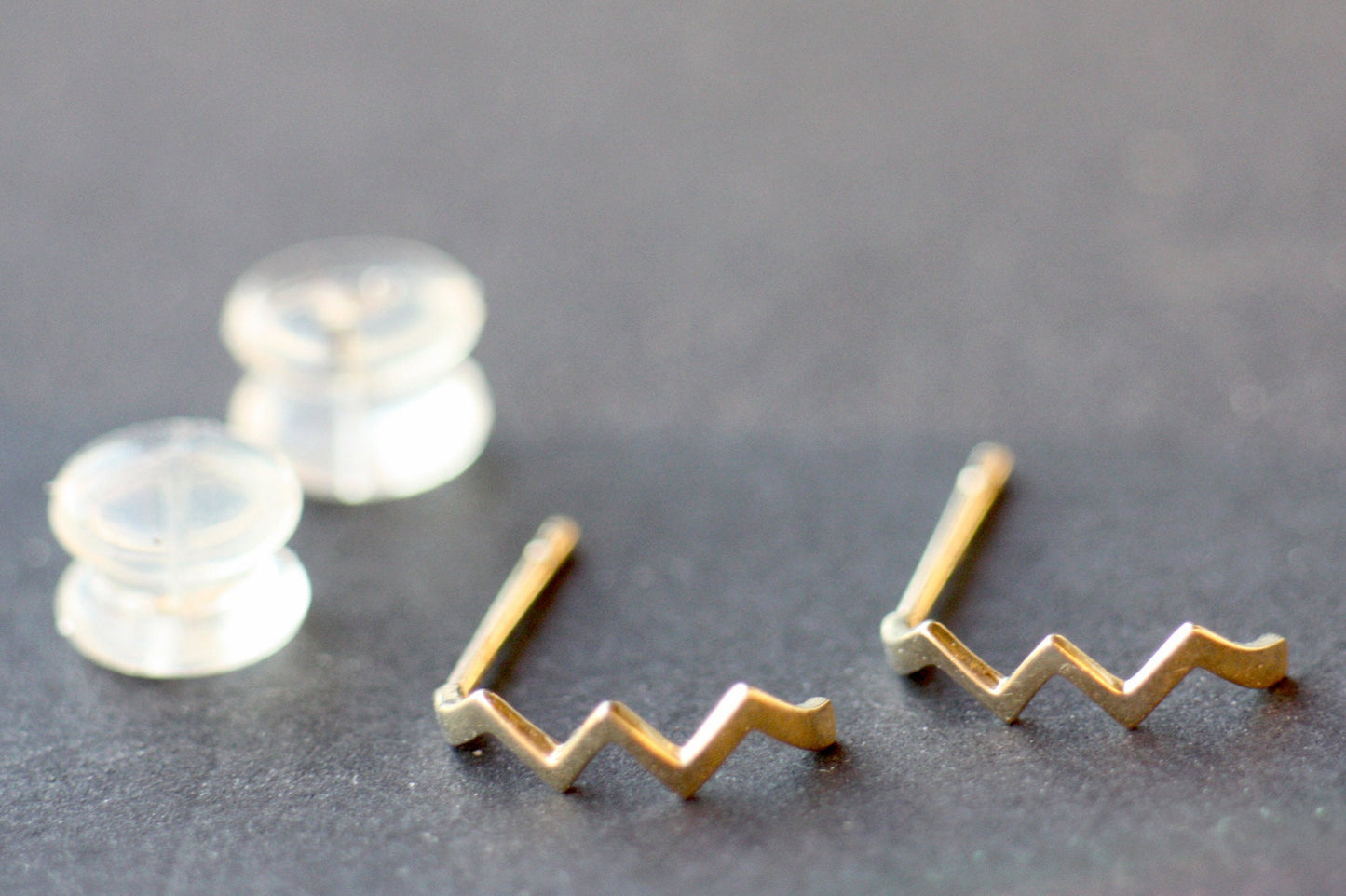 10x3 mm gold zig zag earrings lightweight for comfortable wearing.