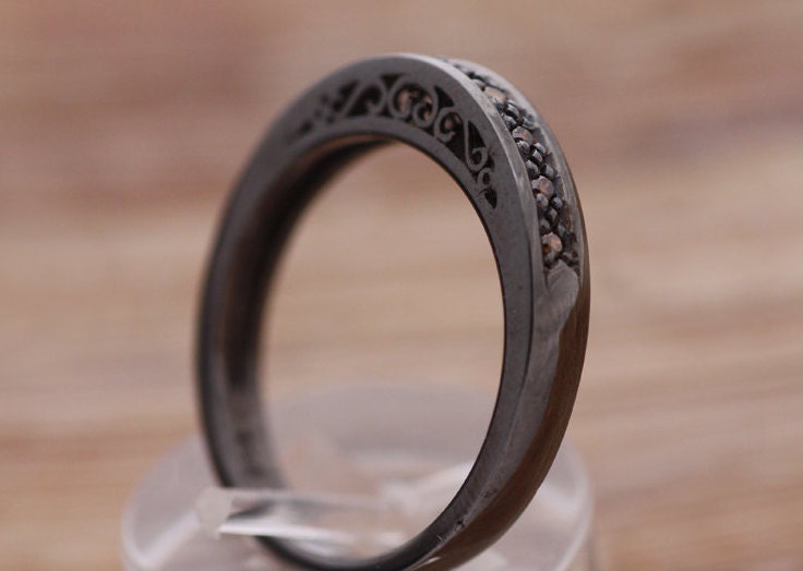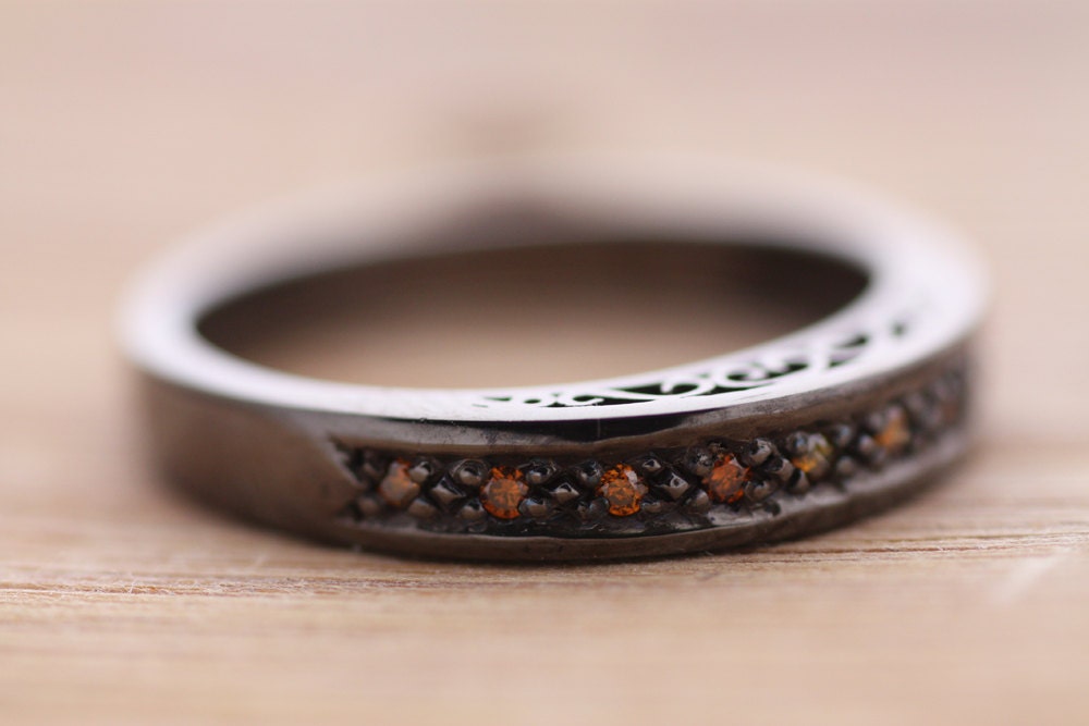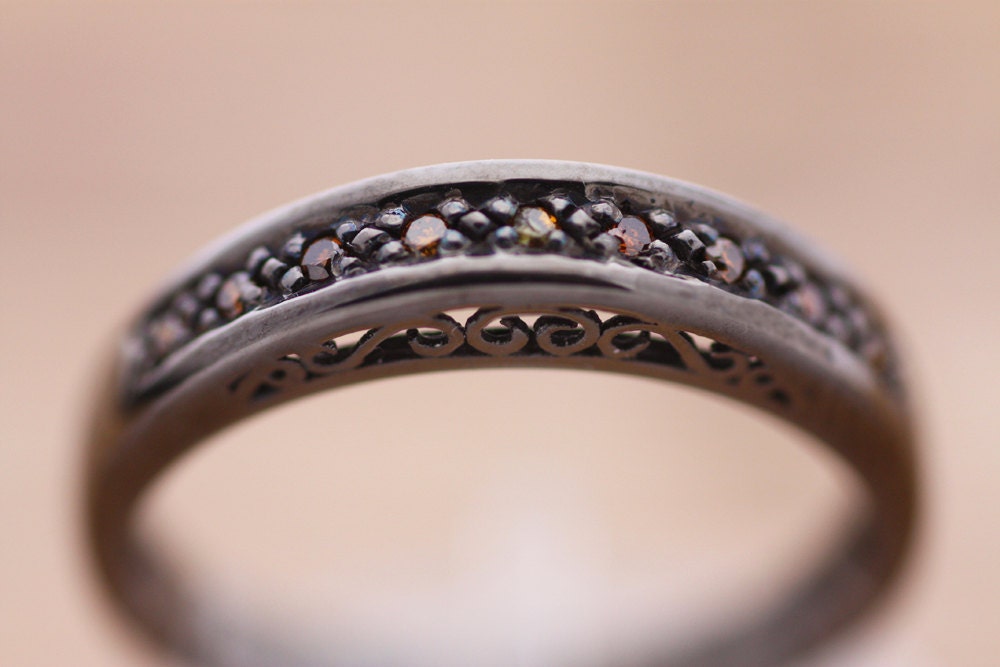 Handmade diamond ring made of Sterling Silver with Yellow or Cognac diamonds black rhodium plated.
