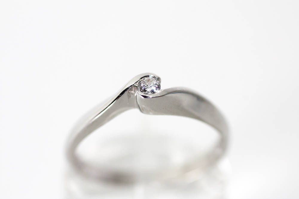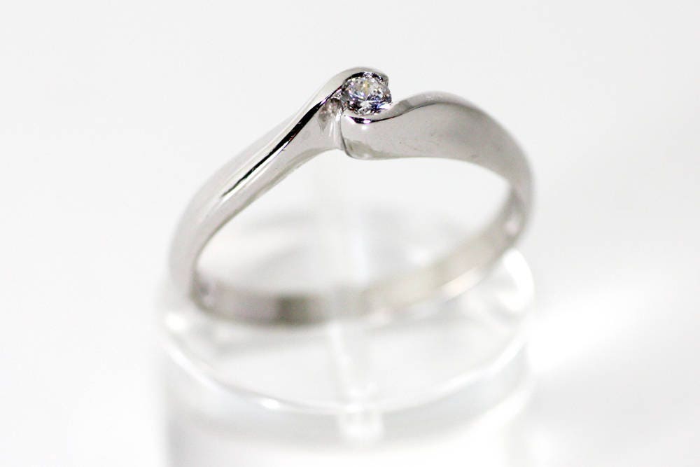 A beautiful handmade engagement ring made of 18K White Gold set with a beautiful round Natural Diamond 0,10 ct .