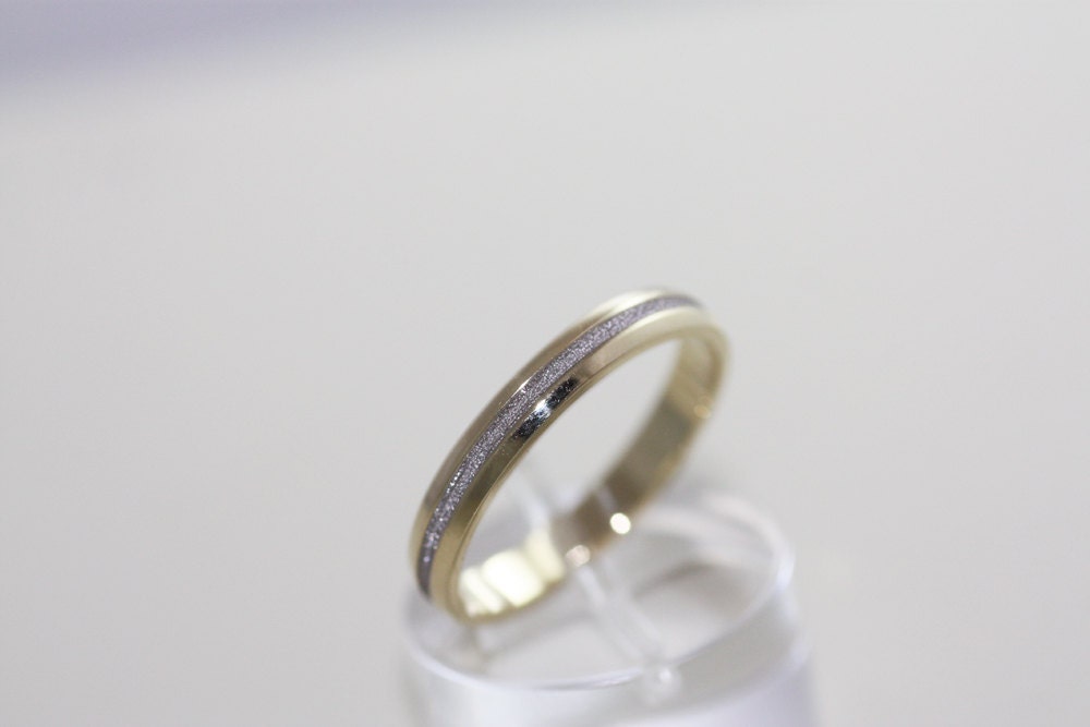 Dainty Gold Wedding band made of Yellow Gold 9K, 14K or 18K, excellent finish, made at 3mm wide and 1.3mm thick, but they can be custom-made thinner or wider for you.