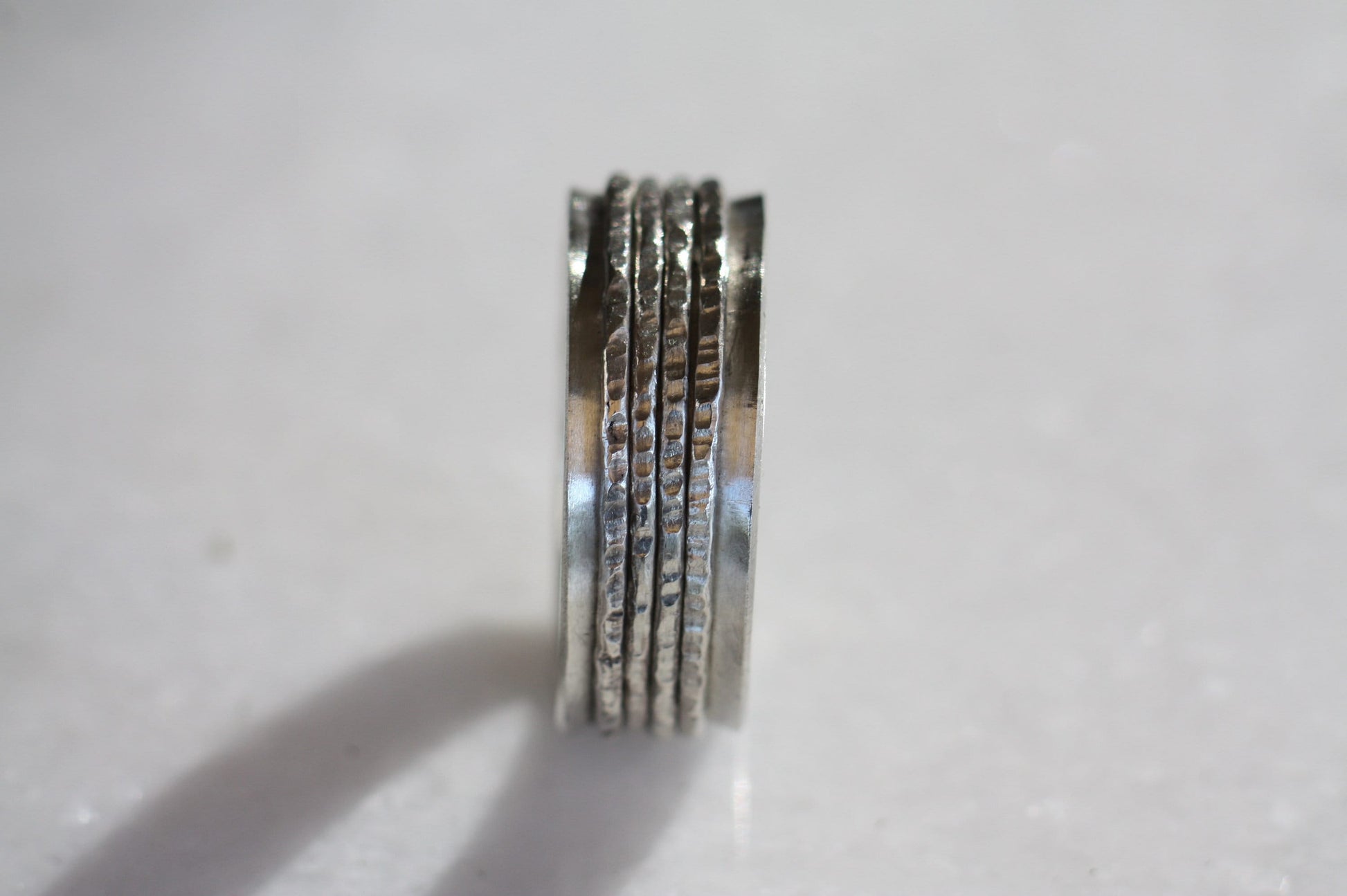 Elevate your style with our Engraved Handwriting Ring with 4 Spinners. This unique silver relief band is perfect for both men and women and can be personalized with a special message, date, or name. Crafted from high-quality sterling silver, this ring boasts a sterling silver stamp guarantee for long-lasting shine. With a width of approximately 10mm and thickness of 1mm, it's the perfect size for everyday wear. Experience a one-of-a-kind accessory that combines style, sentiment, and functionality.