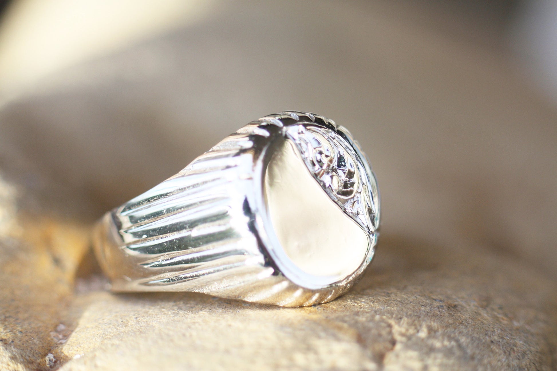 Engraved Signet monogram ring, Personalized with a special date or a sketch, Handwriting initial ring, Family signet ring