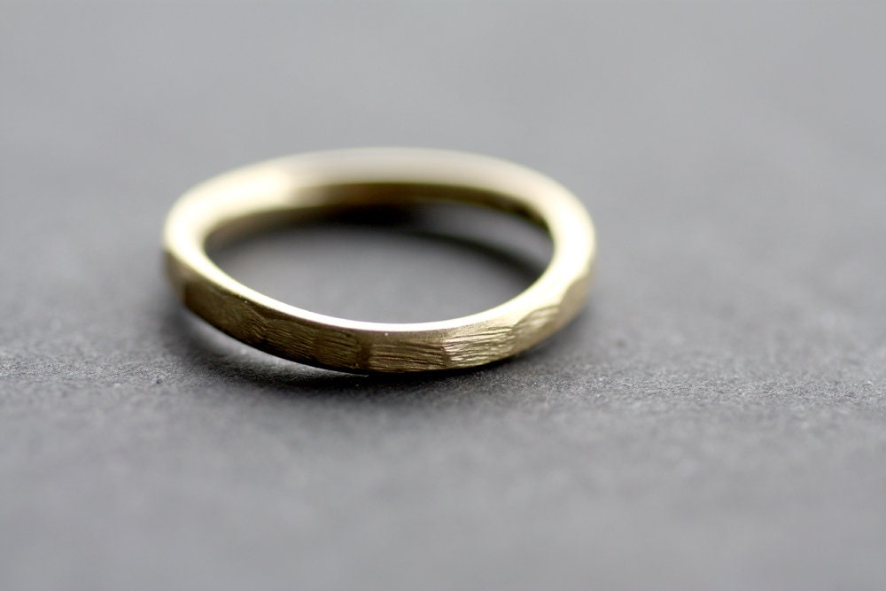 Faceted wavy gold ring, hammer matte stacking Gold Wedding band made of Yellow Thin wedding ring, Gold 9K, 14K or 18K, excellent finish, originally made at 3mm wide and 1.5mm thick, but they can be custom made thinner or wider for you.