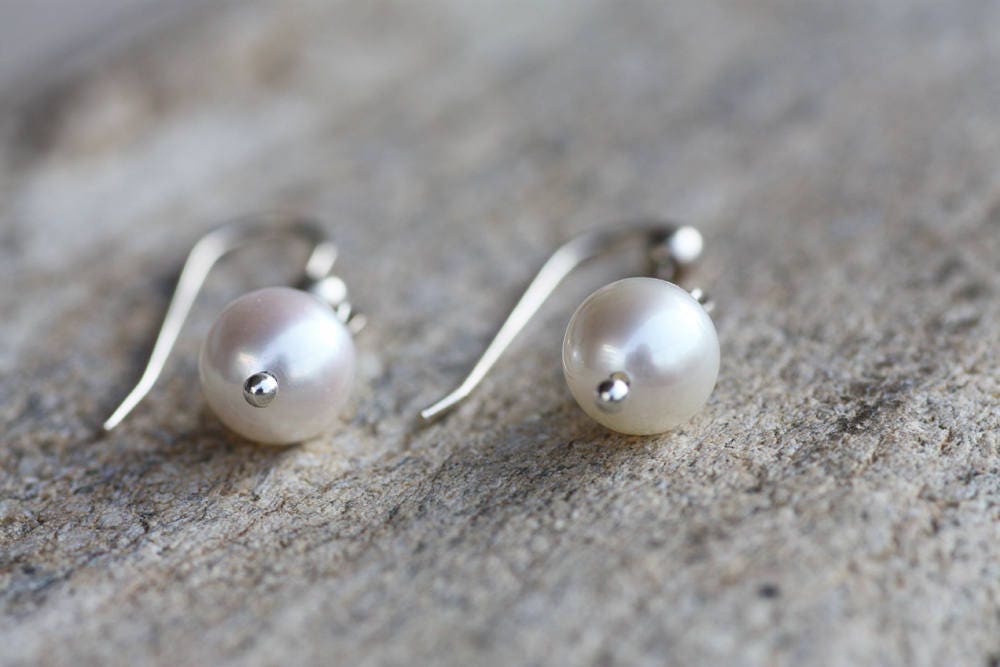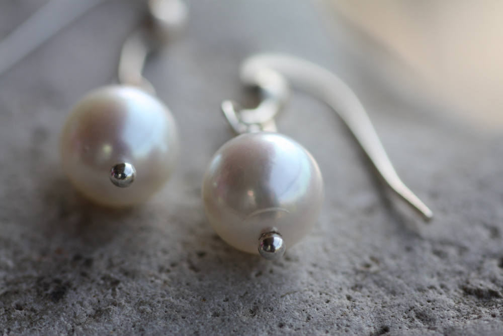 Sterling Silver earrings with Fresh water pearls 9mm.