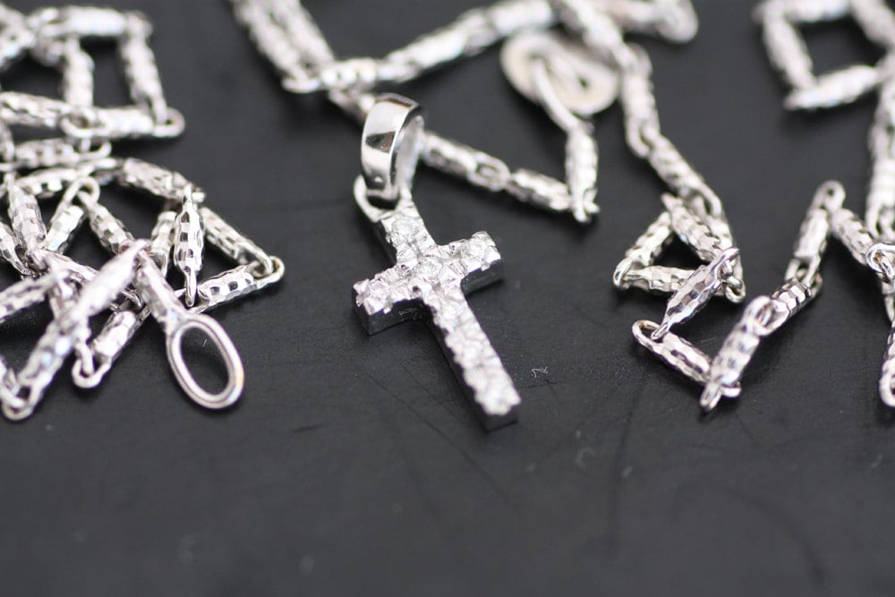 Gold Cross pendant with Round Brilliant Cut Diamonds in White Gold