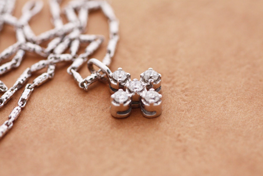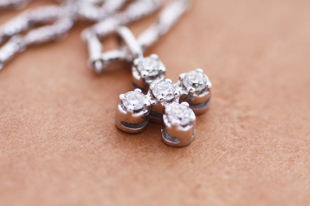 This elegant K18 solid white gold cross contains 5 round brilliant cut diamonds. The diamonds are VS1 clarity, F colour and 0,21ct weight.