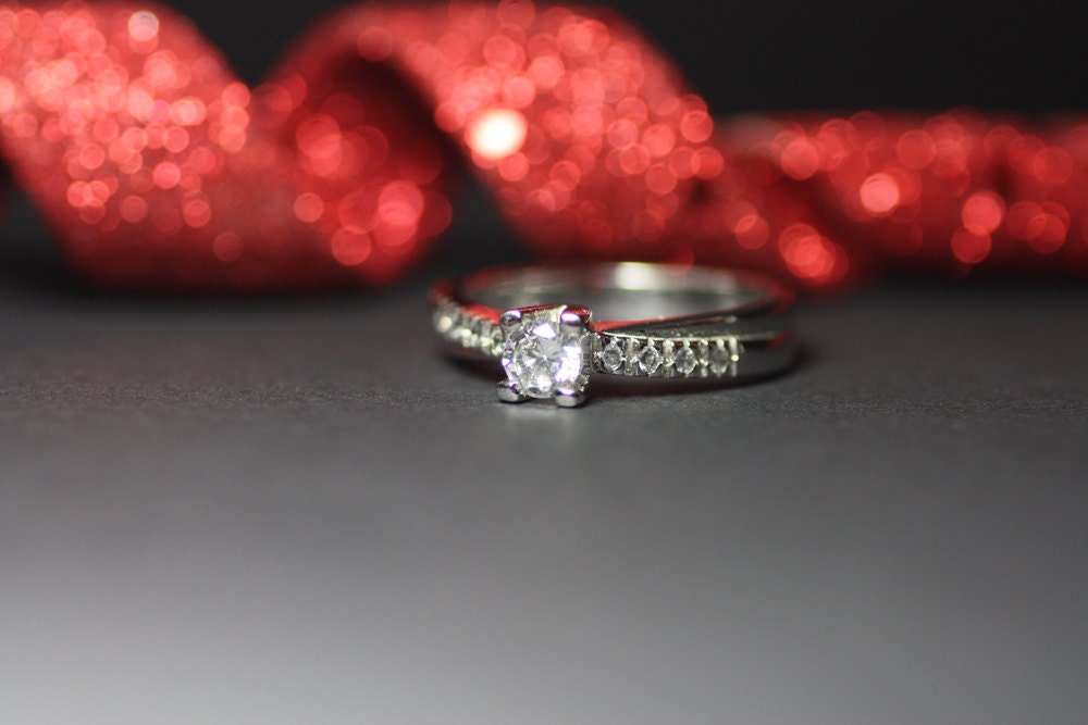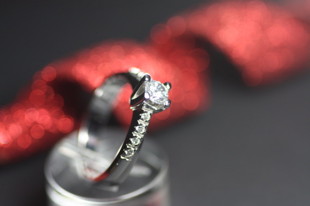 A beautiful handmade engagement ring made of 18K White Gold set with a main Natural Diamond 0,15 ct and 0,08 ct of side stones. This ring can be set with any stone you choose or in any carat weight above 0.15