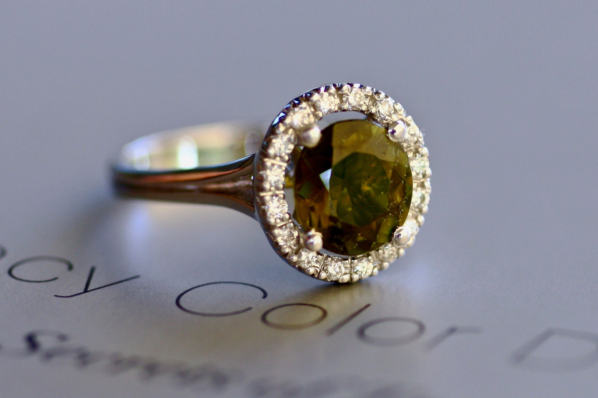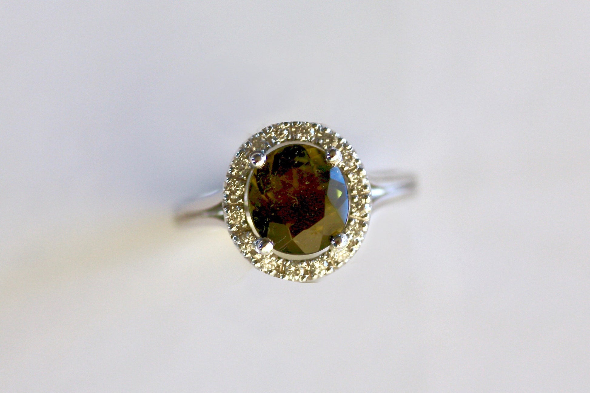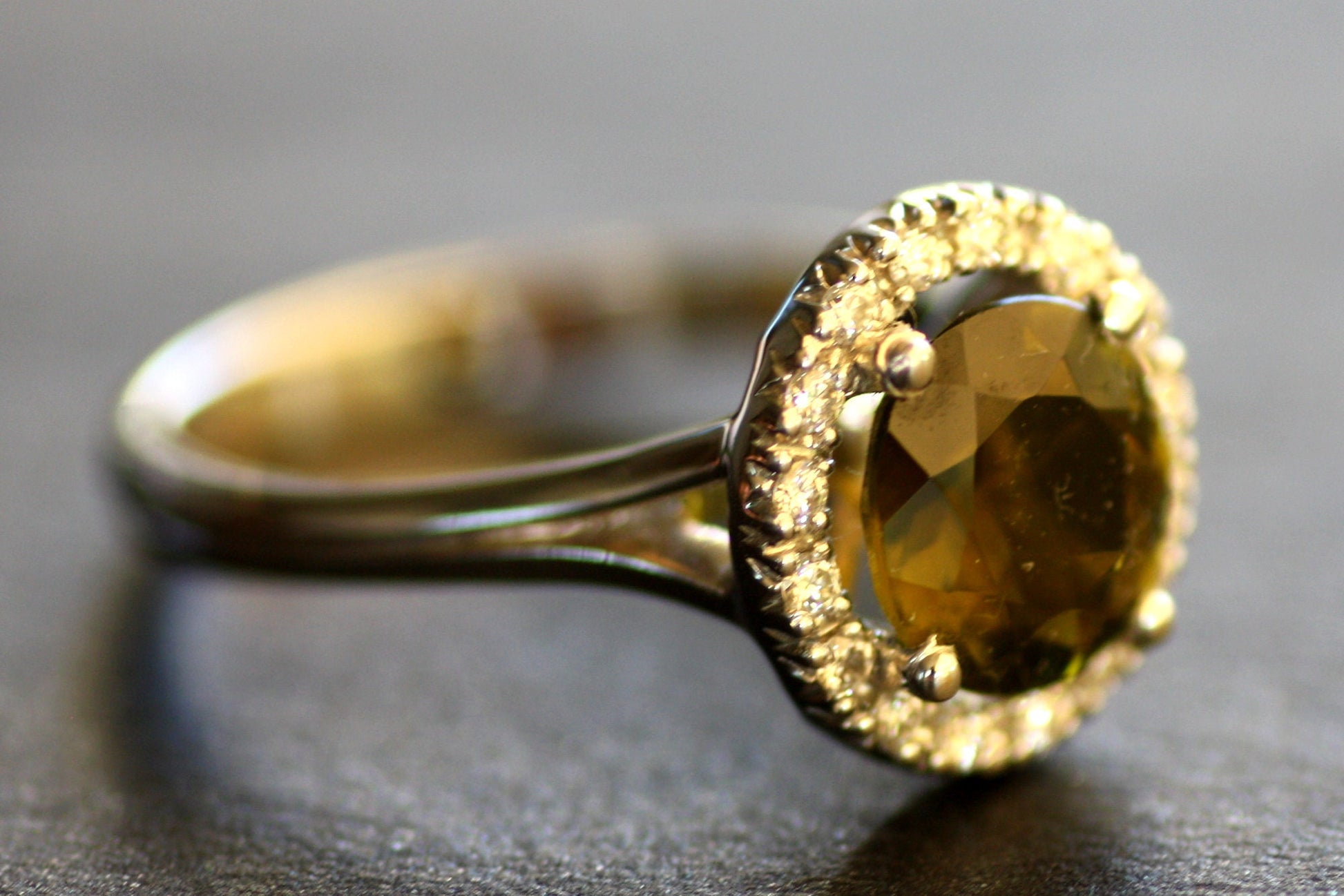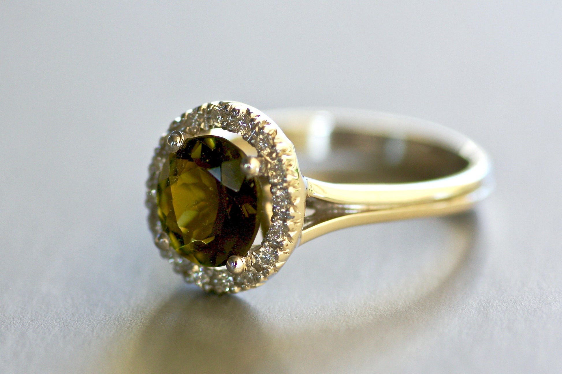 White gold ring with Tourmaline set with diamonds on this plain and simple design easy to wear.