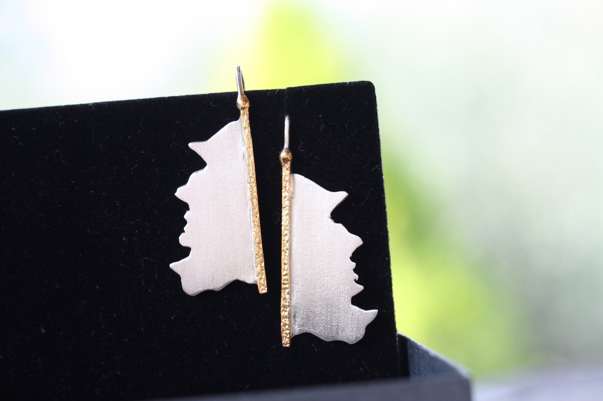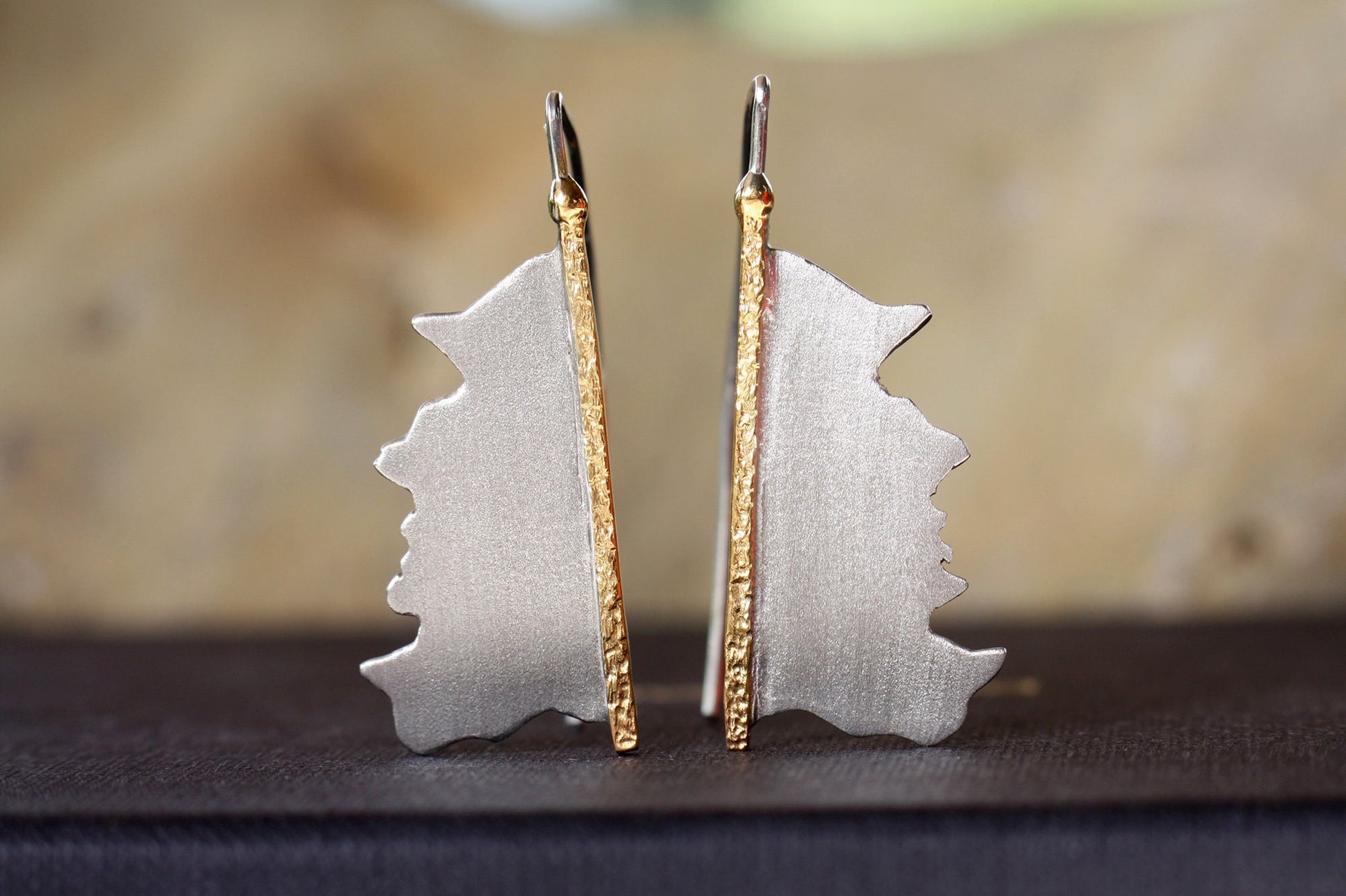 Irregular Geometric earrings with frozen finish, White and Gold Plated earrings