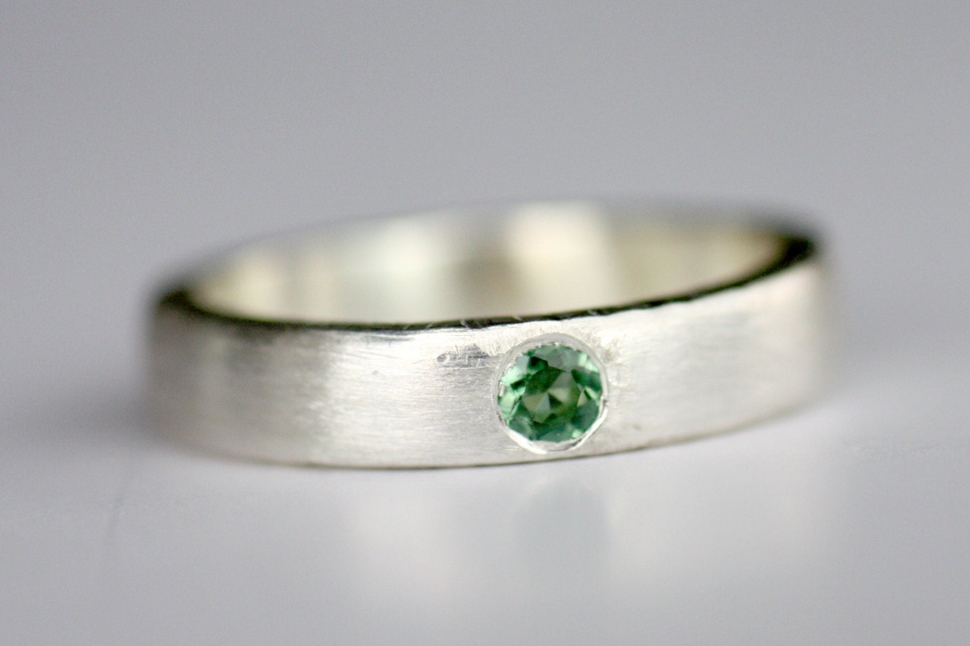 Sterling Silver Green Tourmaline ring, March Birthstone ring. Unique colour Tourmaline, a greenish-cyan 0,12ct set on Sterling Silver white gold plated.