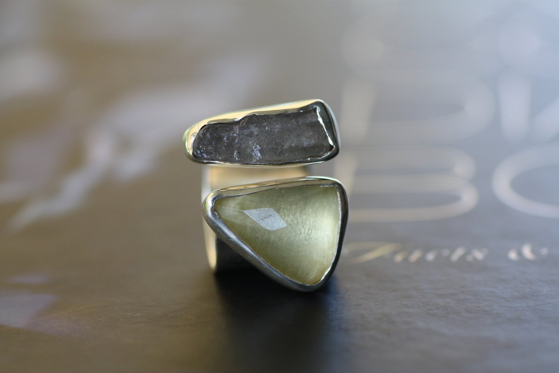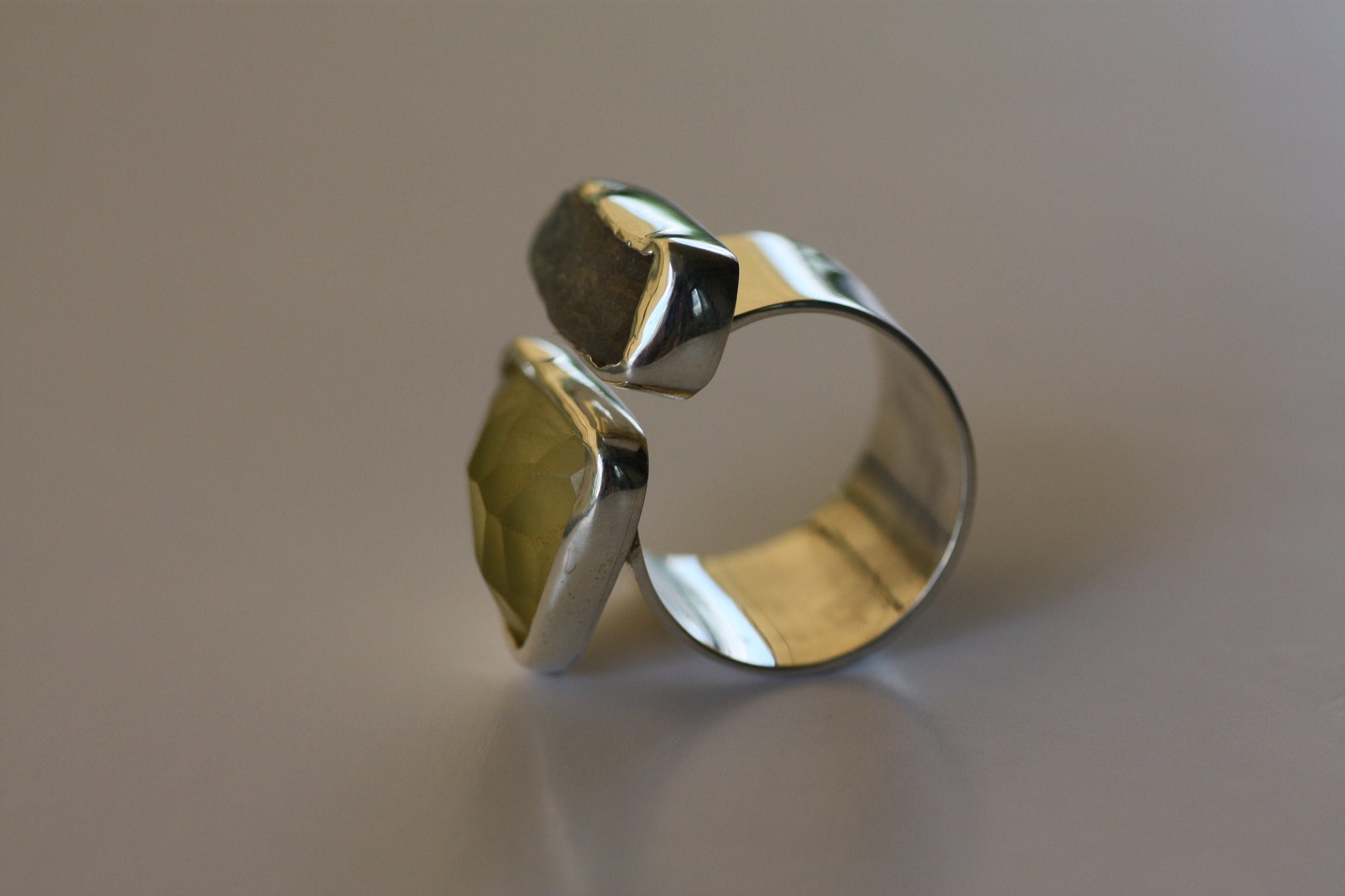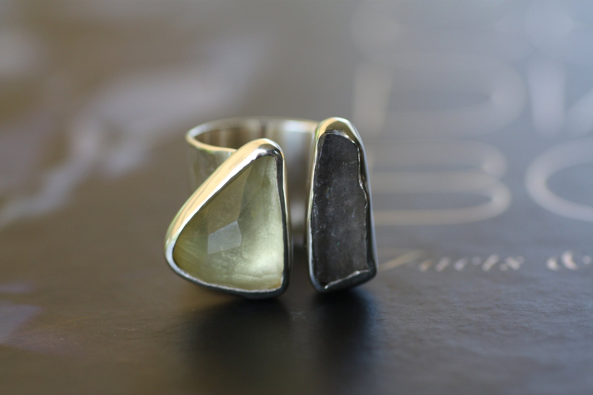 Handcrafted rough Lemon Quartz and Labradorite silver ring
