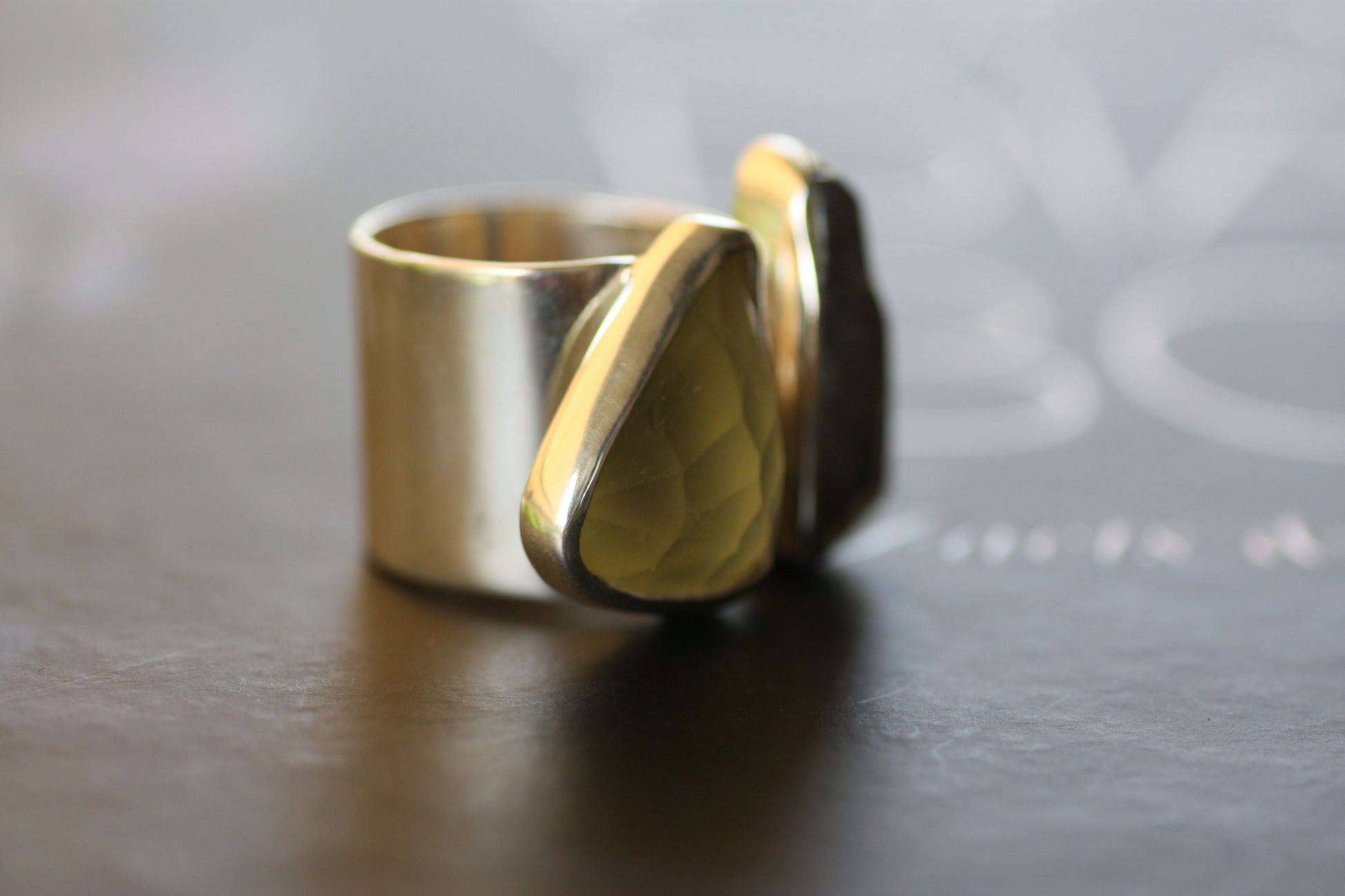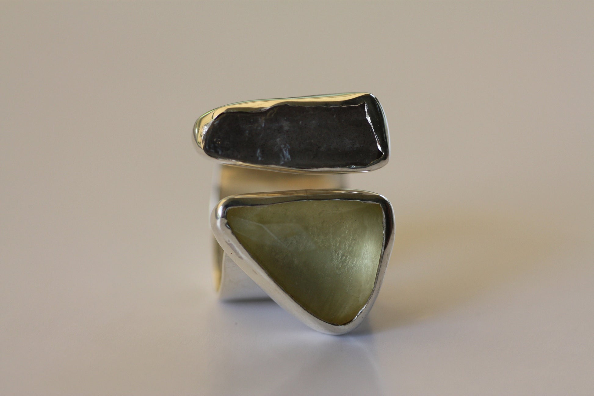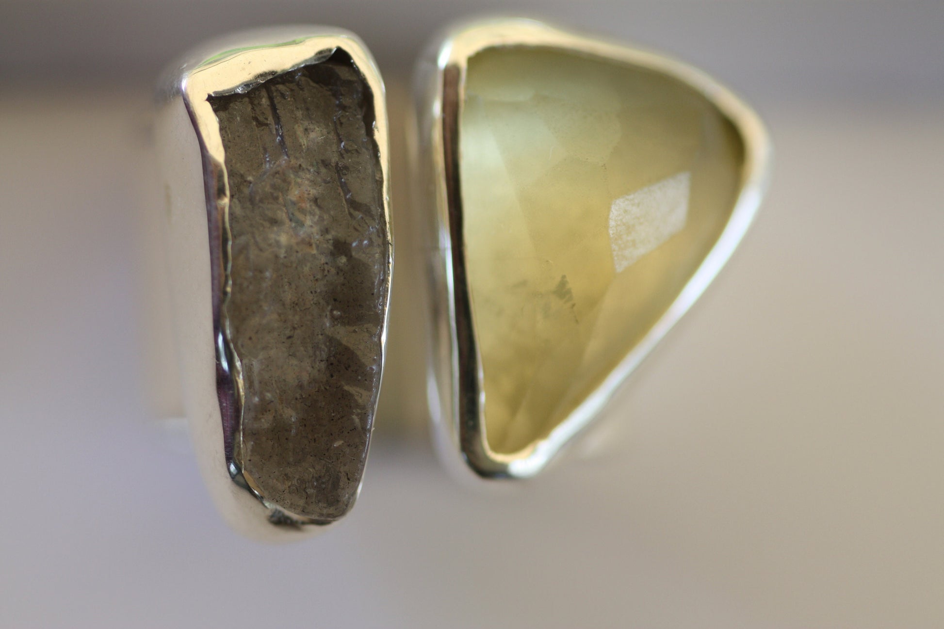 Handcrafted rough Lemon Quartz and Labradorite silver ring