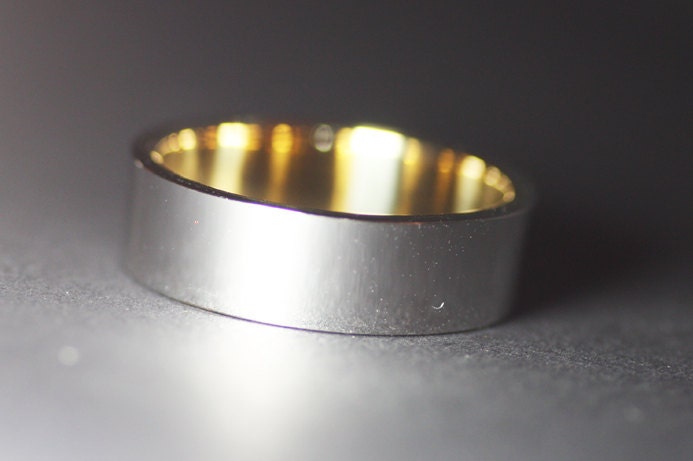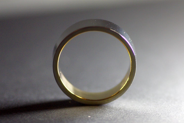 Wedding ring his and hers, alternative engagement ring for men, White and Yellow gold wedding band for men