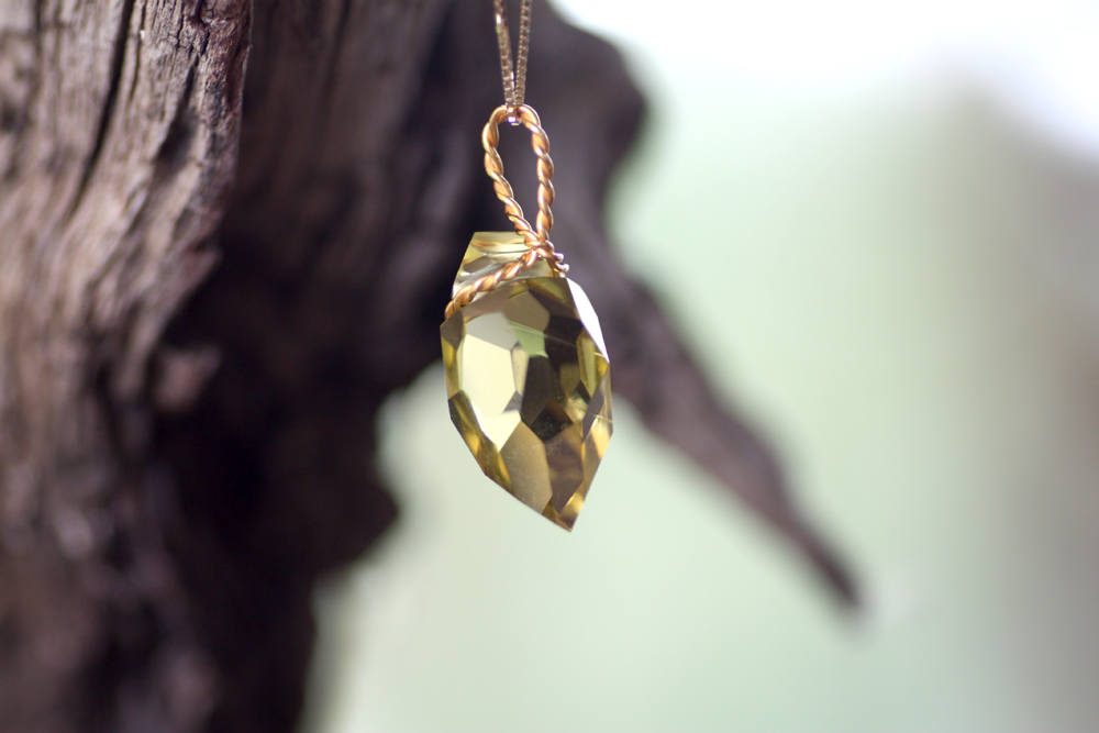 Lemon Quartz, Handmade pendant K18, Handcrafted gemstone