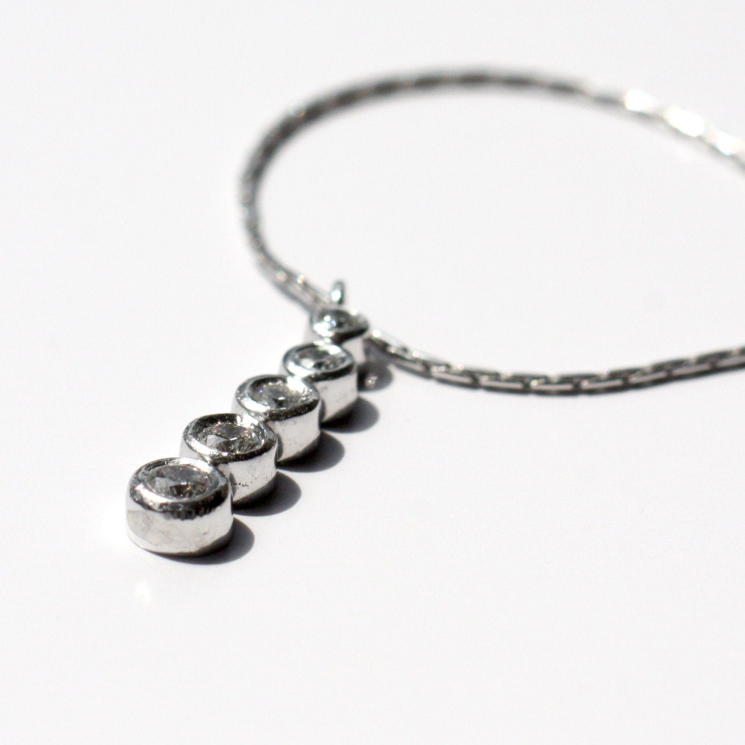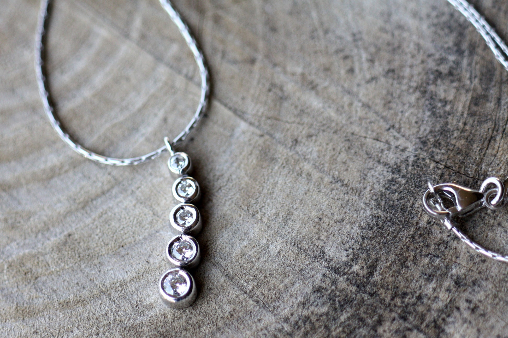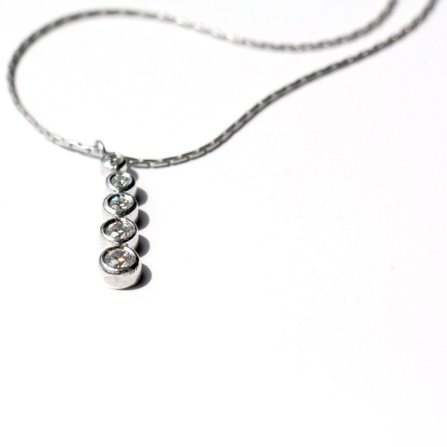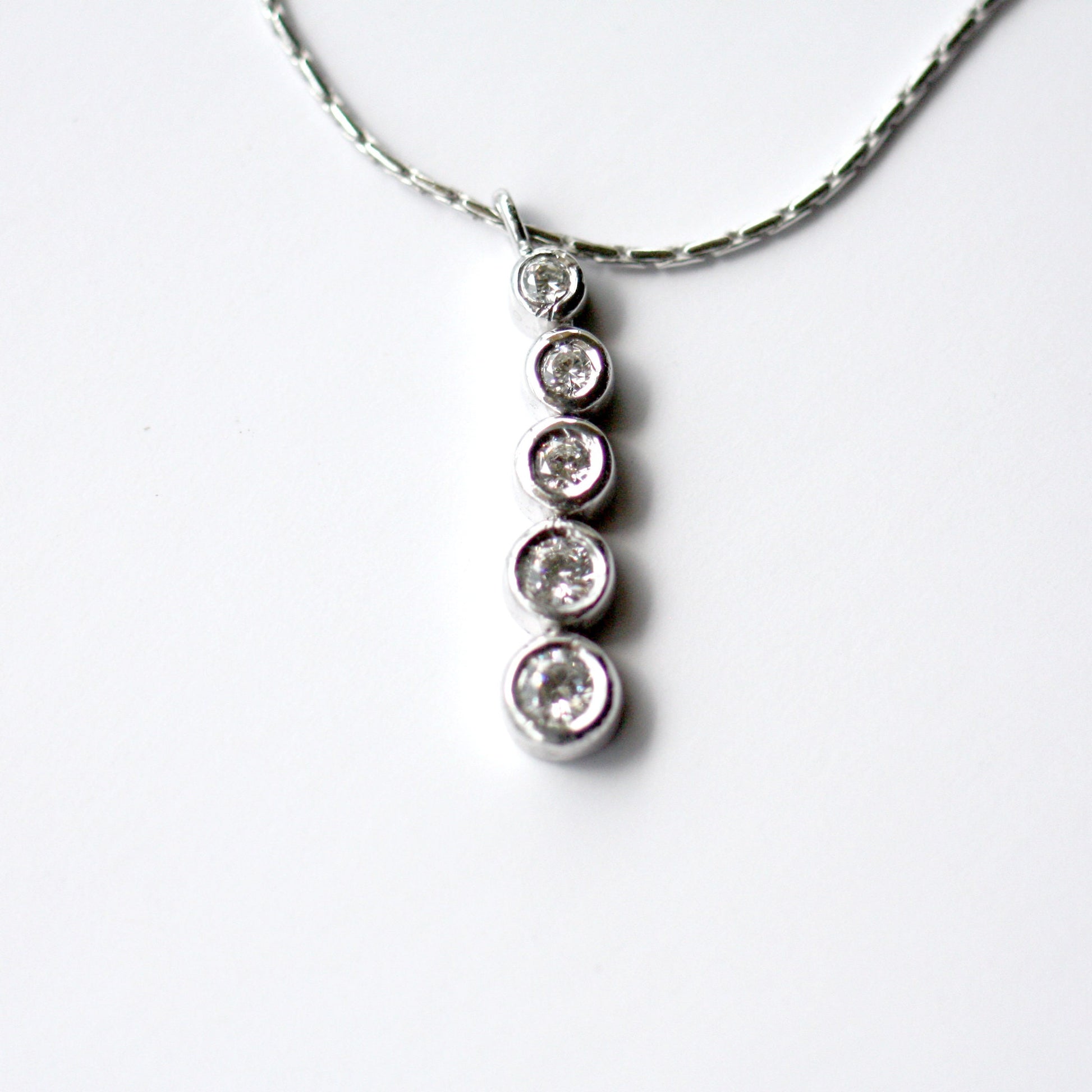 White Gold Linear diamond necklace with a K14 chain. Round brilliant cut Diamonds, starting from 0,02 to 0,06ct, total weight 0,20ct. Diamonds' characteristics are F colour - VS1 clarity and excellent cut. Perfect Engagement Bride Gift or Anniversary Gift