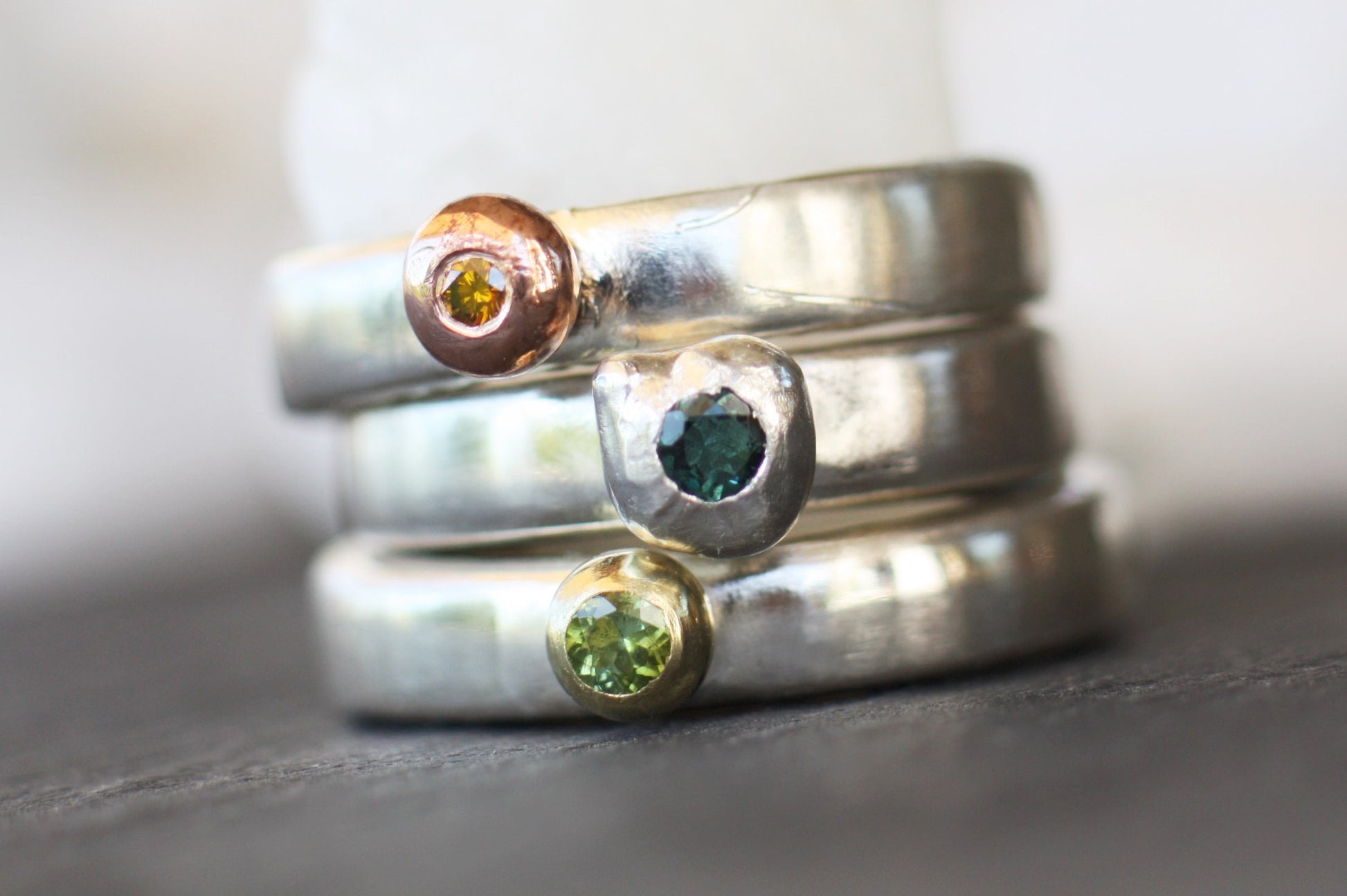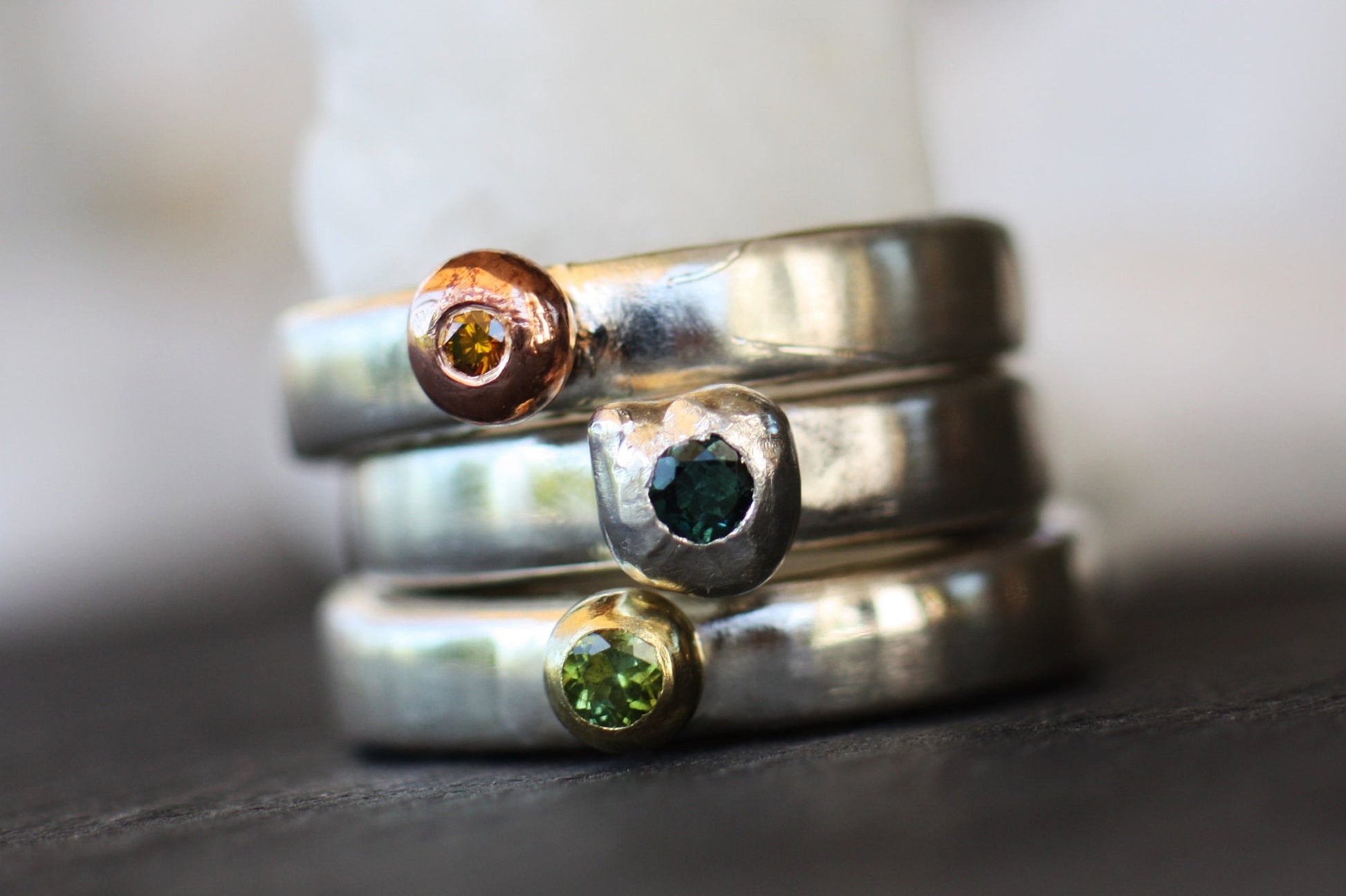 Dainty Tourmaline ring with an amazing colour combination of the cognac diamond and copper bezel.
