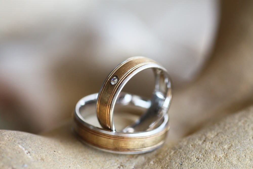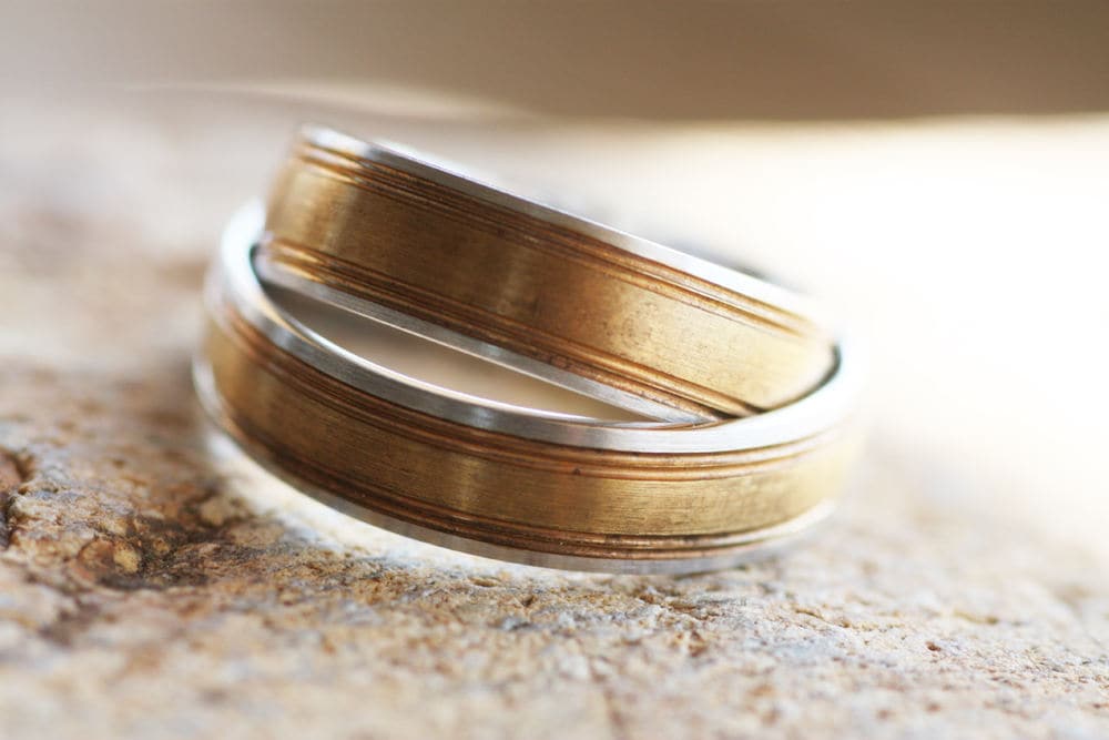 Rustic Gold Wedding band made of White and Yellow Gold 9K, 14K or 18K, excellent finish, made at 5mm wide and 1.4mm thick, but they can be custom-made thinner or wider for you.