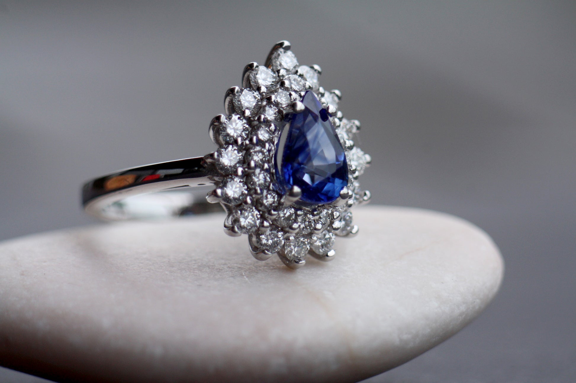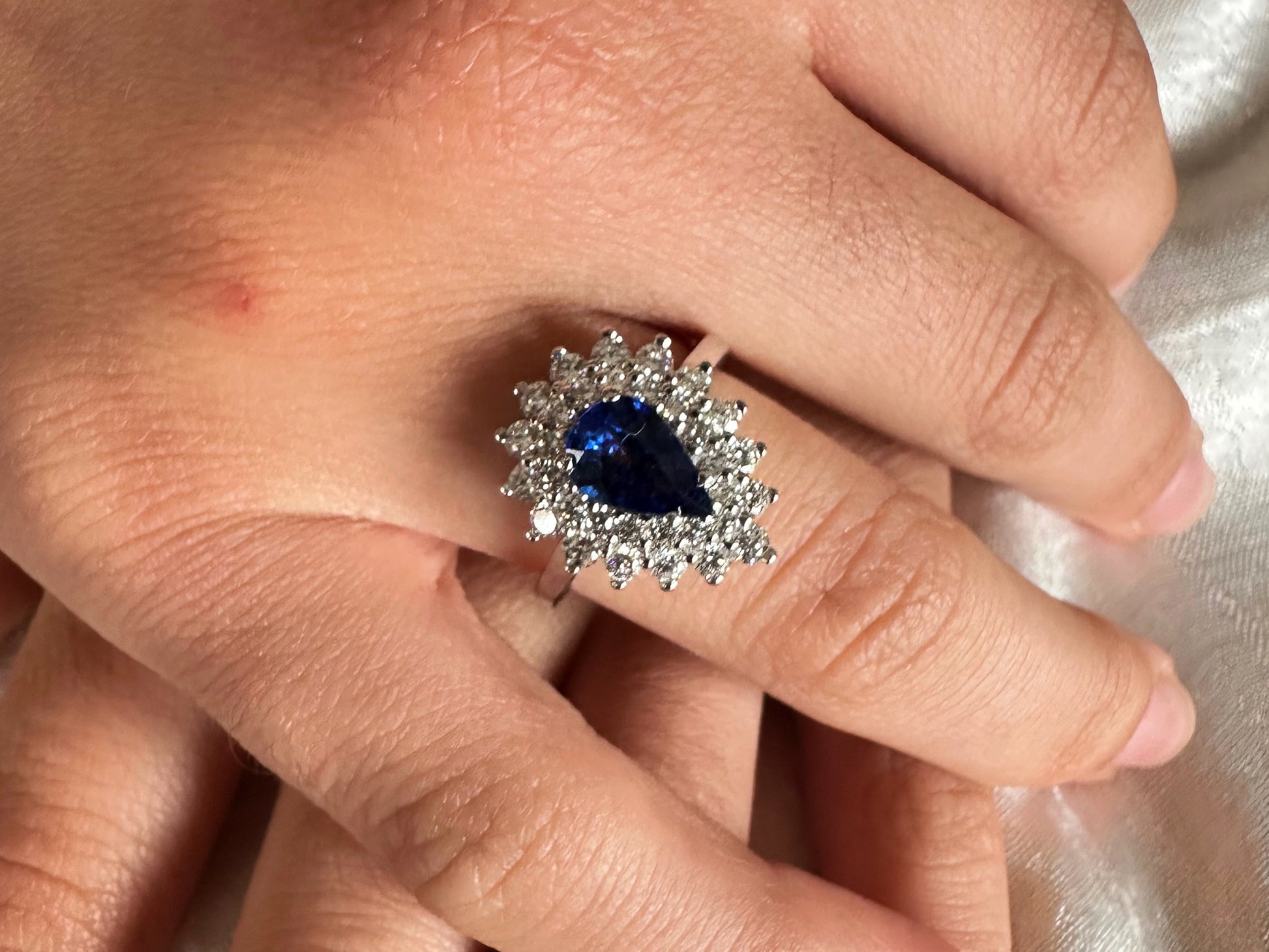 - Blue sapphire 1,52 ct weight and 6x8 dimensions set in K18 white gold