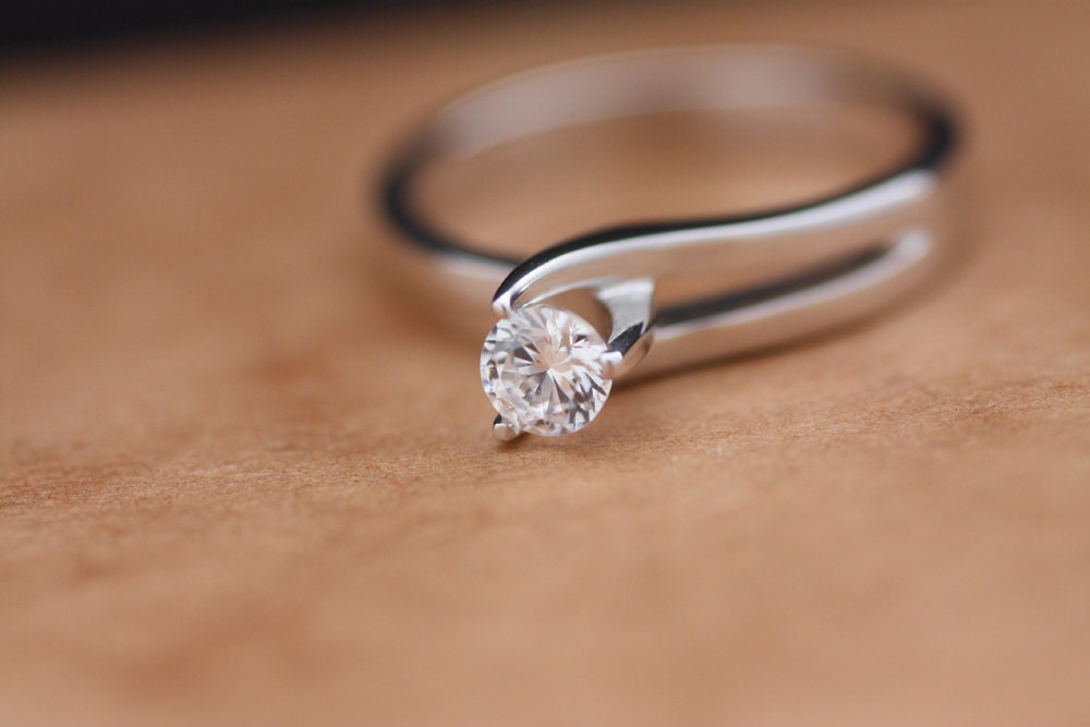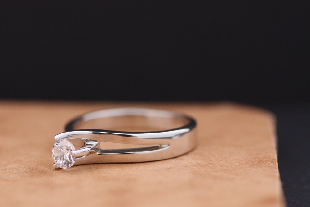 A beautiful handmade engagement ring made of 18K White Gold set with a beautiful Natural Diamond 0,20 ct .
