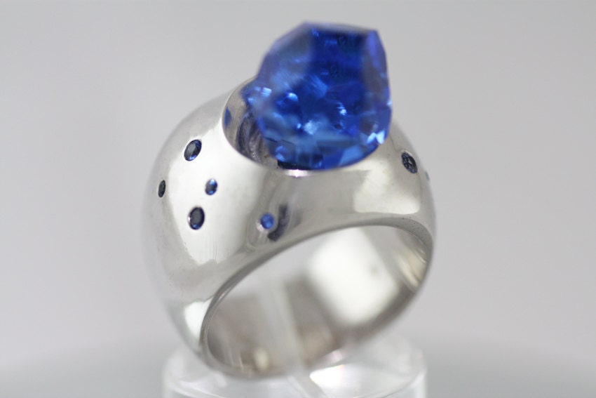 Sterling silver, Quartz stone 14,2 ct, and Sapphires 0,14 ct.