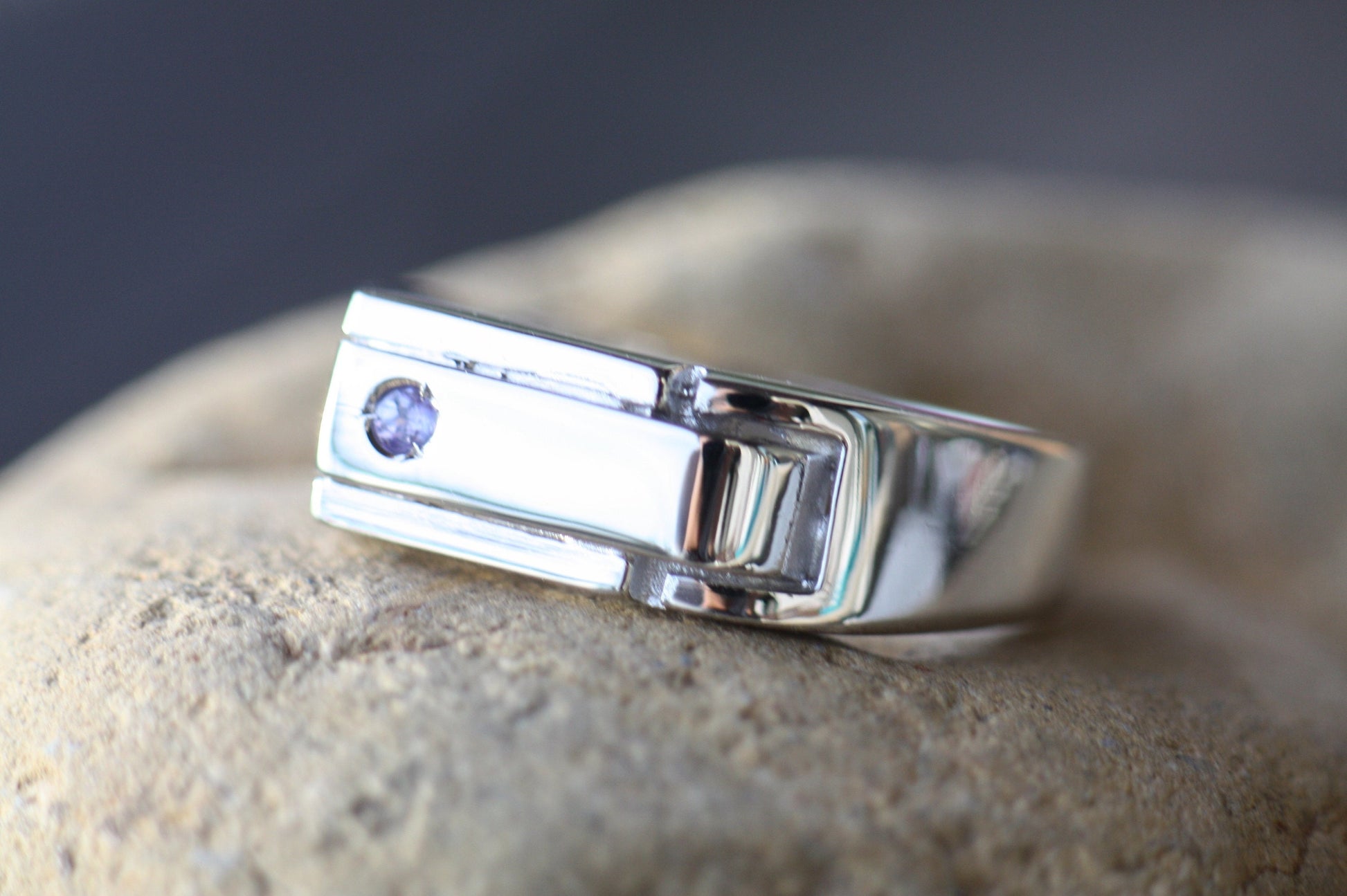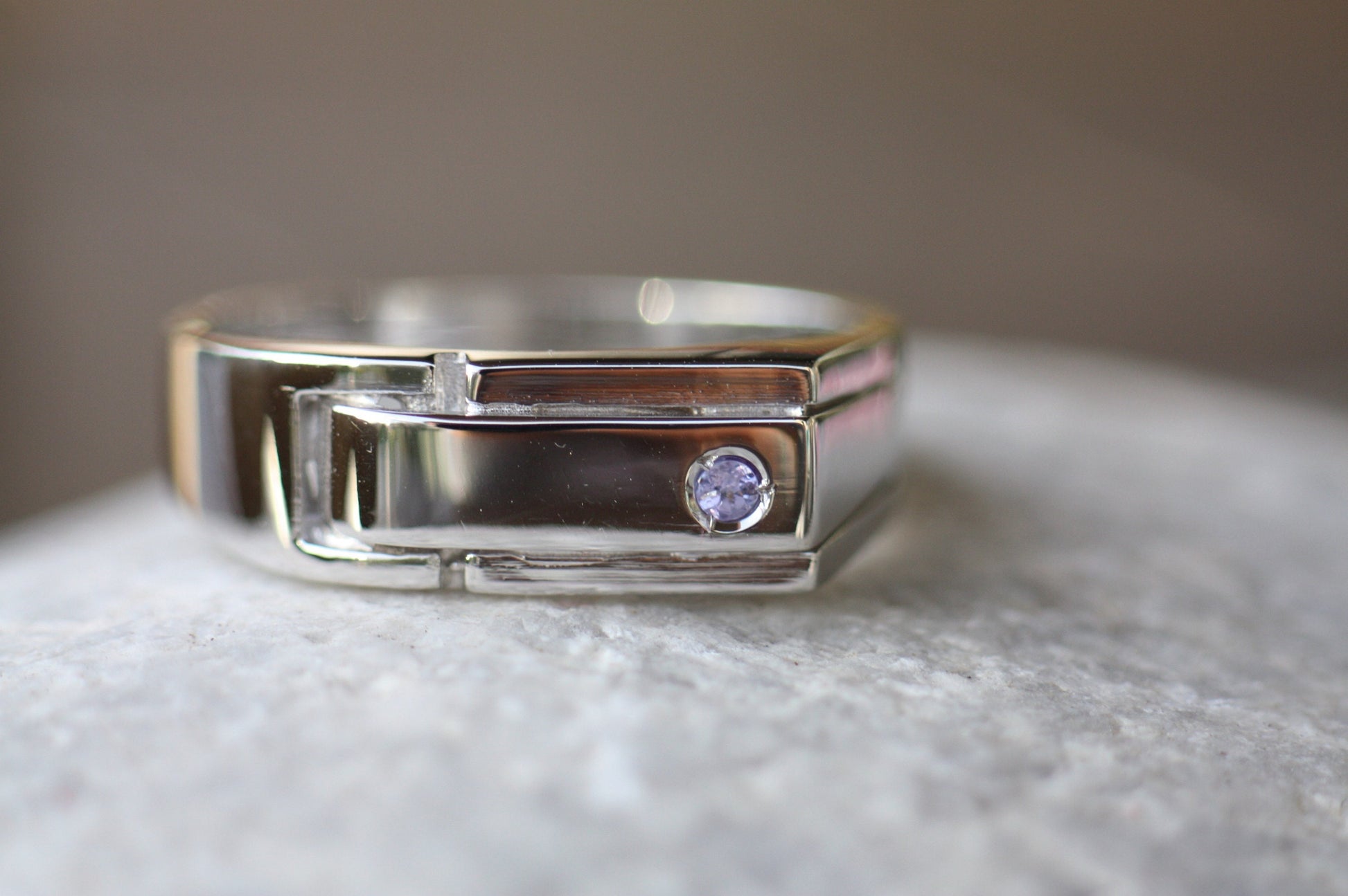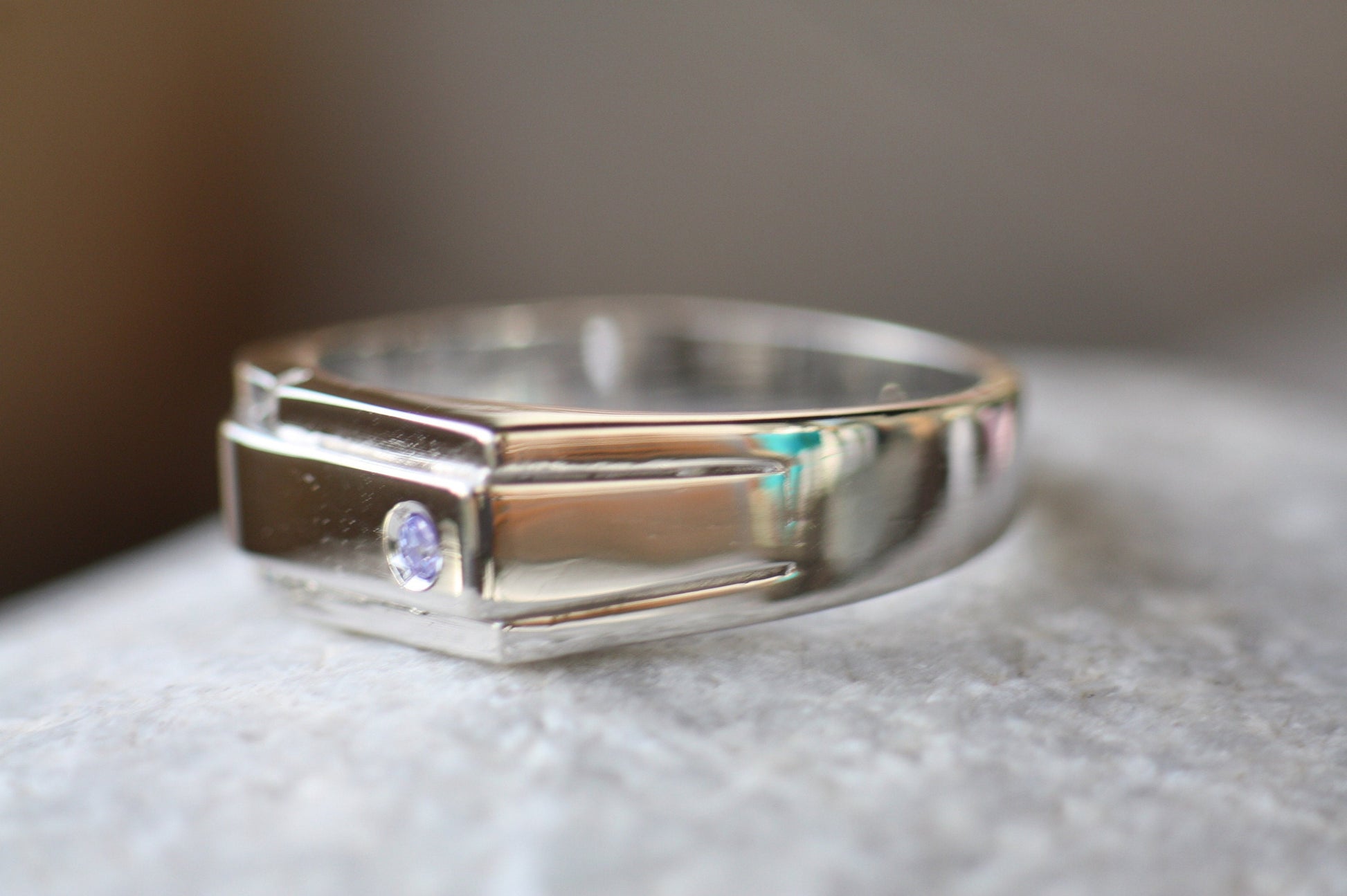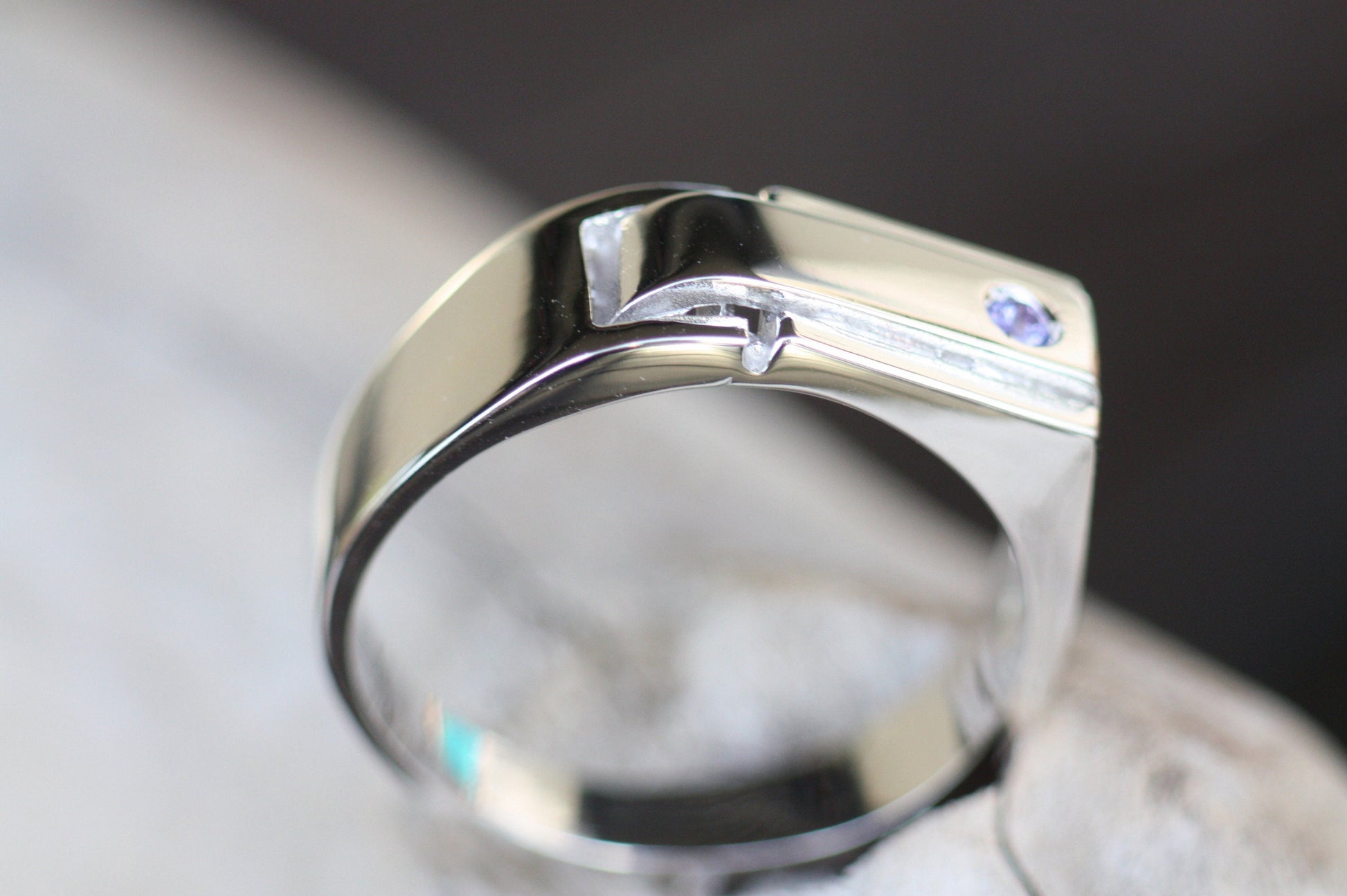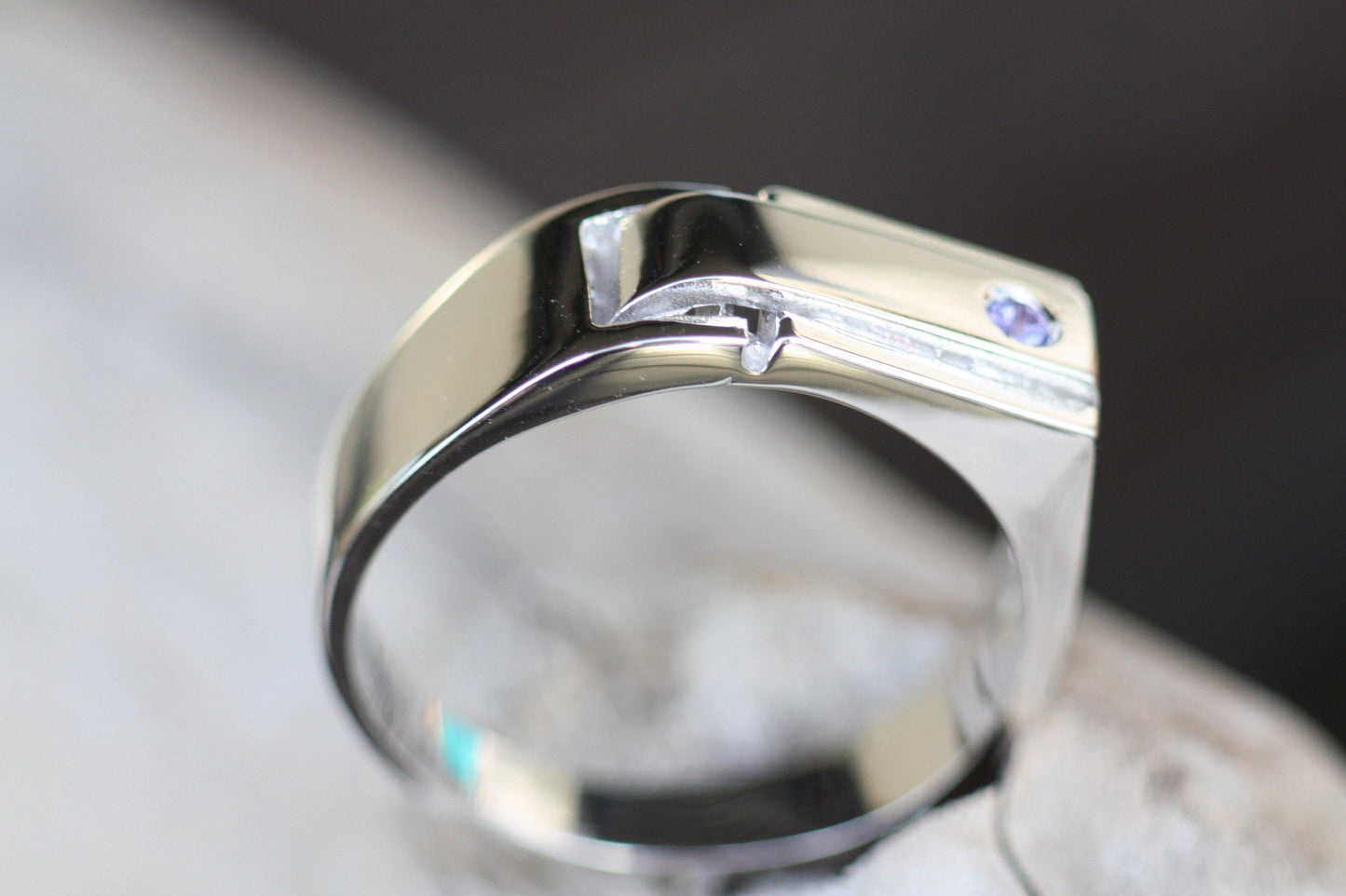 Engraved Signet Tanzanite ring, Birthday stone signet handwriting initial ring, Personalised Family signet ring, Mother's Day gift with her lucky stone