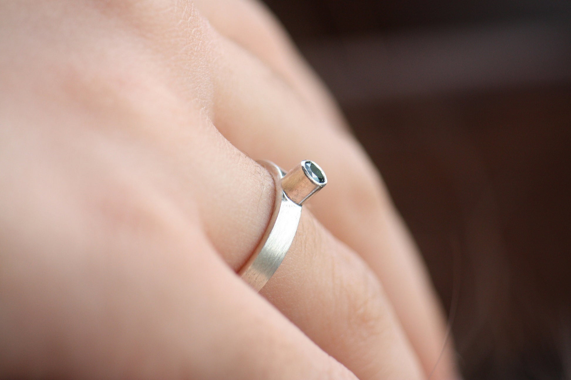Sterling Silver, a little dark green 0,12 ct Tourmaline