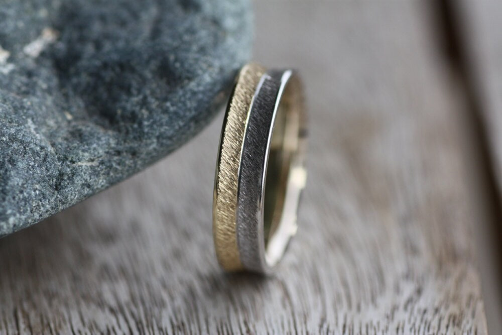 Gold Wedding bands made of White and Yellow Gold 9K, 14K or 18K, excellent finish, originally made at 5mm wide and 1.4mm thick, but they can be custom-made thinner or wider for you.
