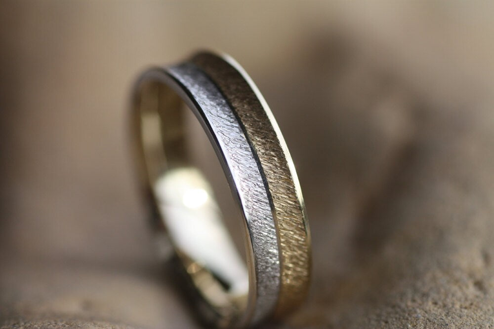 Textured wedding ring in solid gold. Choose White, yellow or rose gold and personalize it with an engraving or a gemstone.