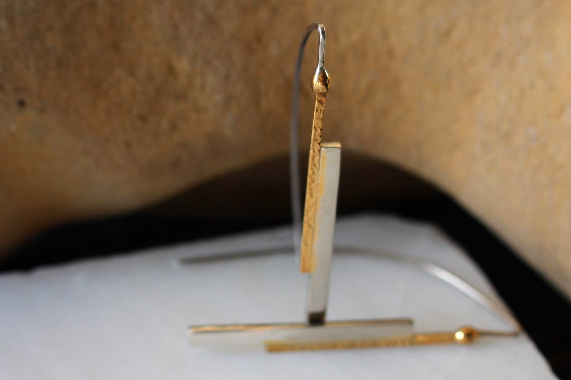 Geometric Gold and White plated Hammered earrings, ideal best friend gift