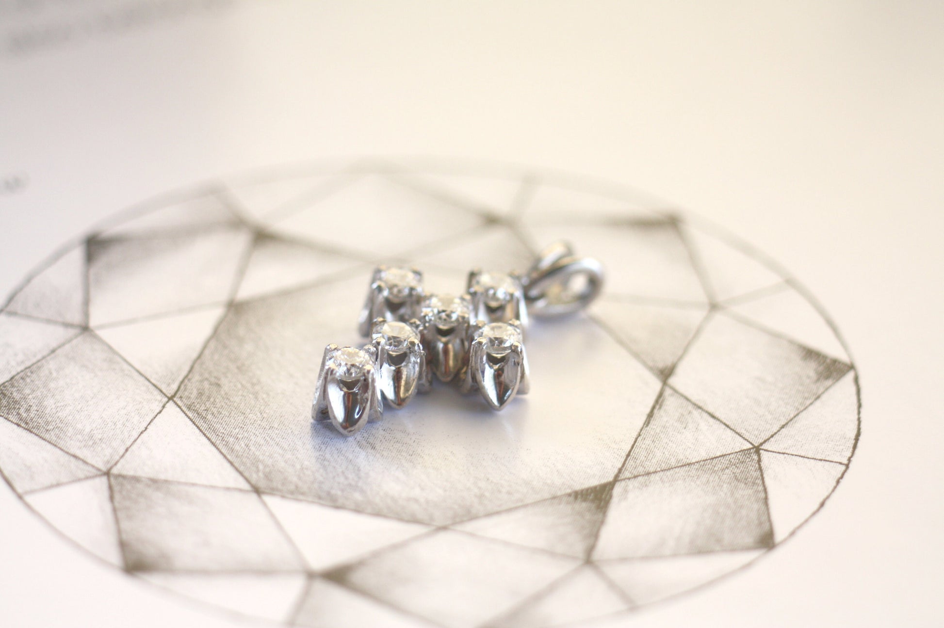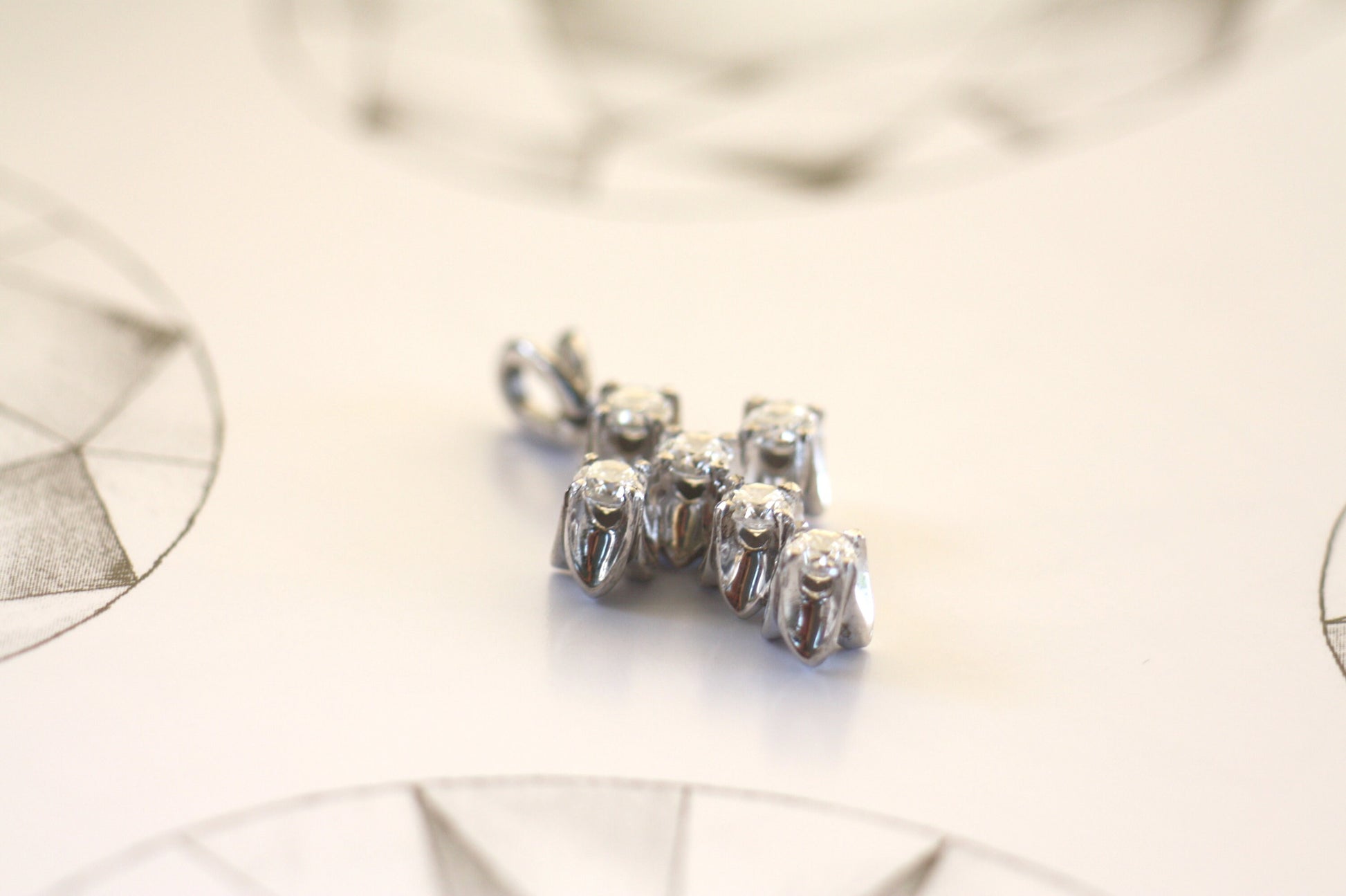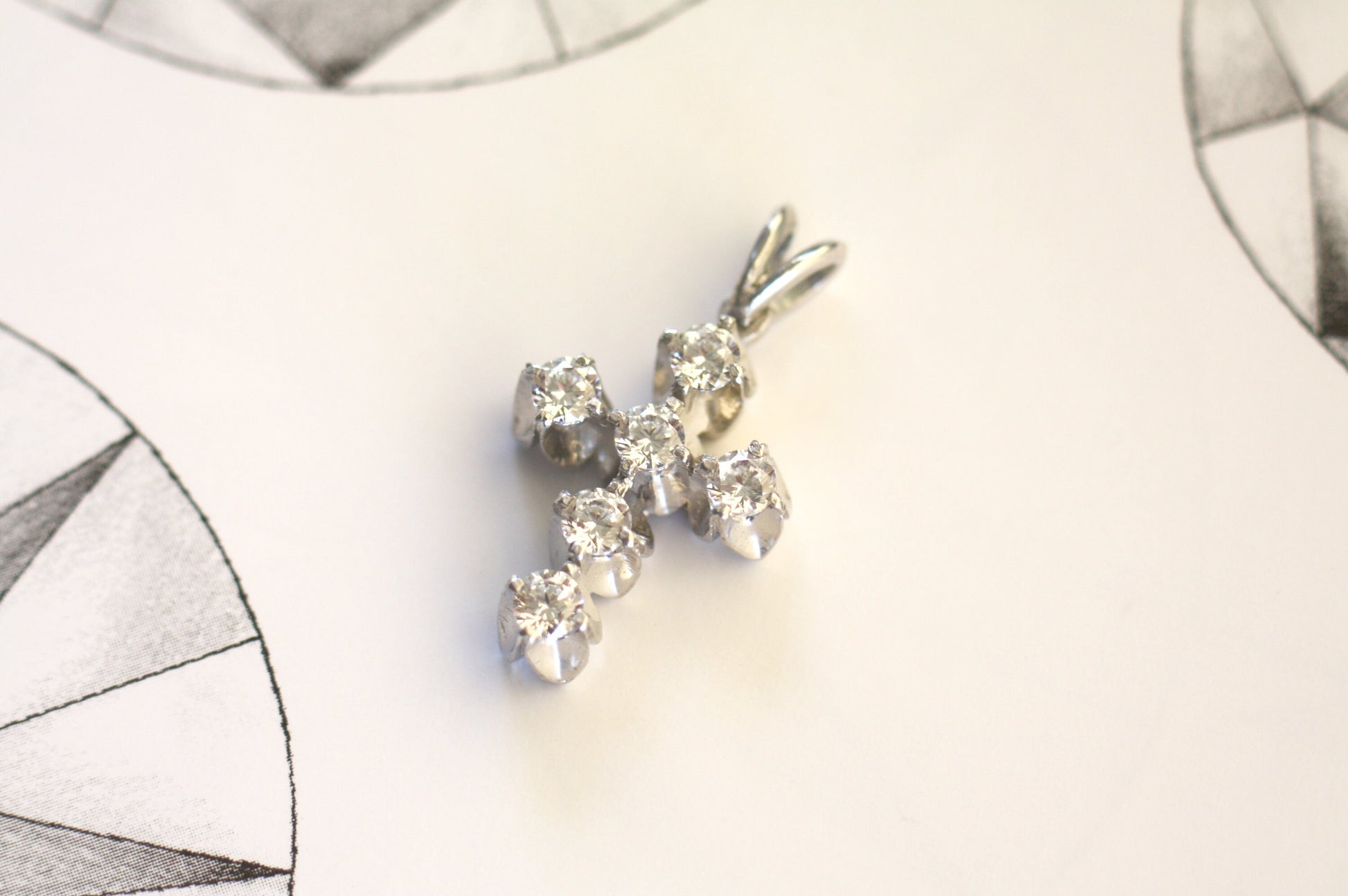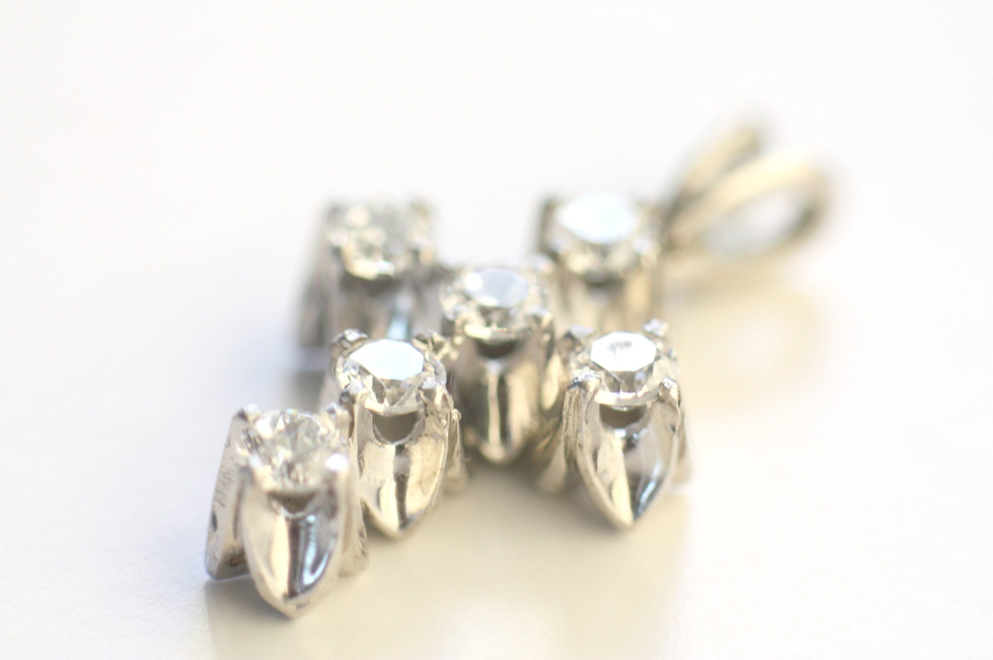White gold k18 Diamond Cross with 6 round brilliant-cut diamonds, 0,24ct total weight, F colour, VS clarity